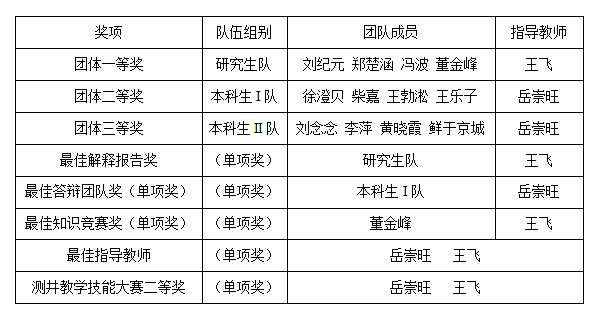 KY开元参加第七届全国大学生测井技能大赛获奖情况