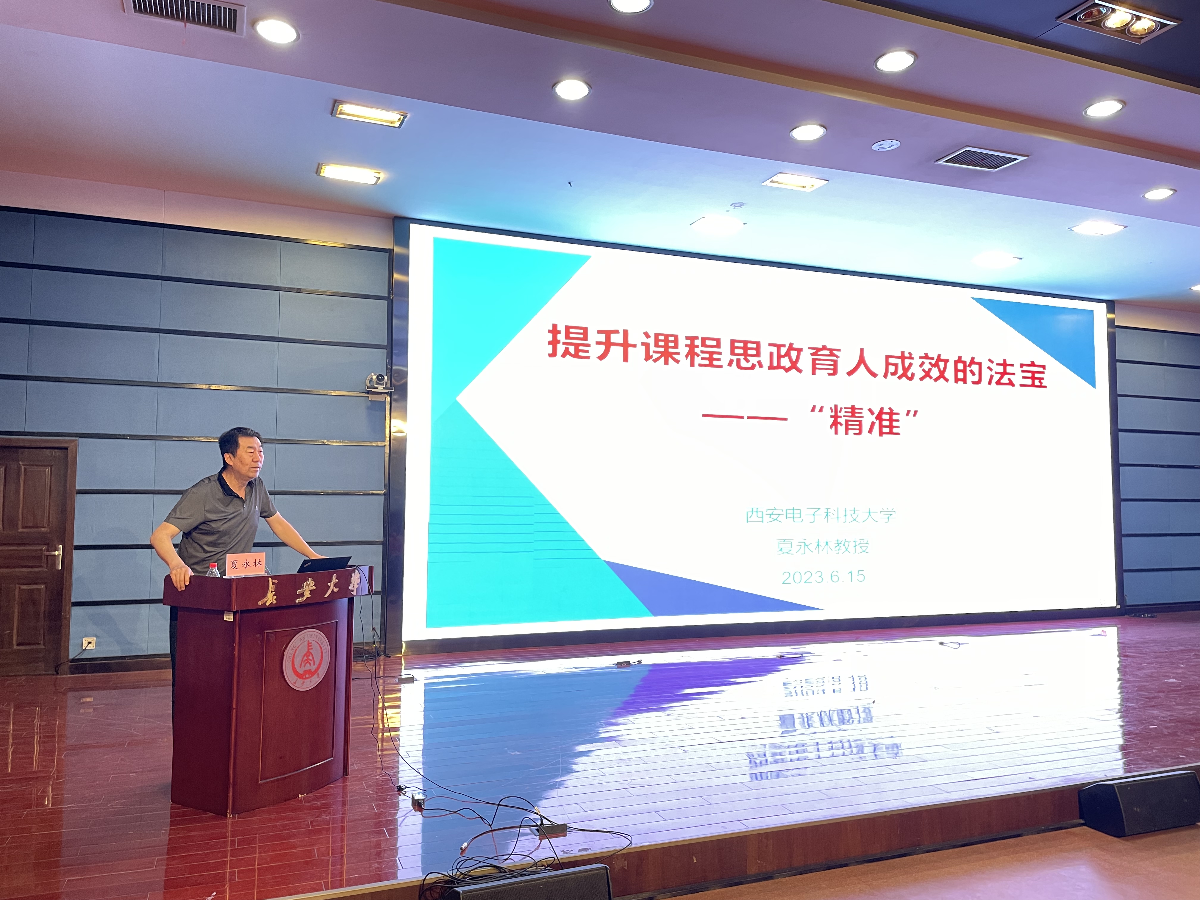 为进一步推进学习贯彻习近平新时代中国特色社会主义思想主题教育走深走实、落实教育部师德集中学习教育有关工作部署要求、强化学校教师思想政治和师德师风建设,6月15日上午,学校举办“思政大讲堂”,邀请西安电子科技大学马克思主义学院教授夏永林作报告。
