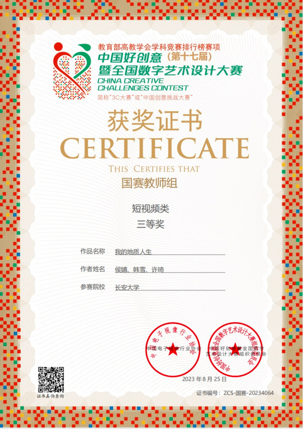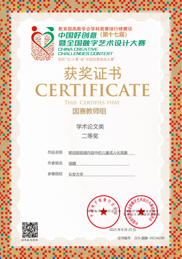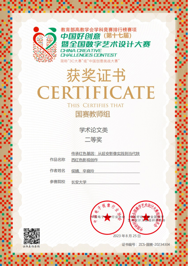 近日,第17届中国好创意暨全国数字艺术设计大赛落下帷幕,人文学院广播影视系教师侯婧撰写的论文《移动短视频内容中的儿童成人化现象》获教师组学术论文类国赛二等奖;侯婧、辛晓玲合作论文《传承红色基因:从延安影像实践到当代陕西红色影视创作》获教师组学术论文类国赛二等奖;侯婧、韩雪、许琦创作的纪录片《我的地质人生》获得短视频类国赛三等奖。这是KY开元教师首次在该赛事中荣获国家级奖项。