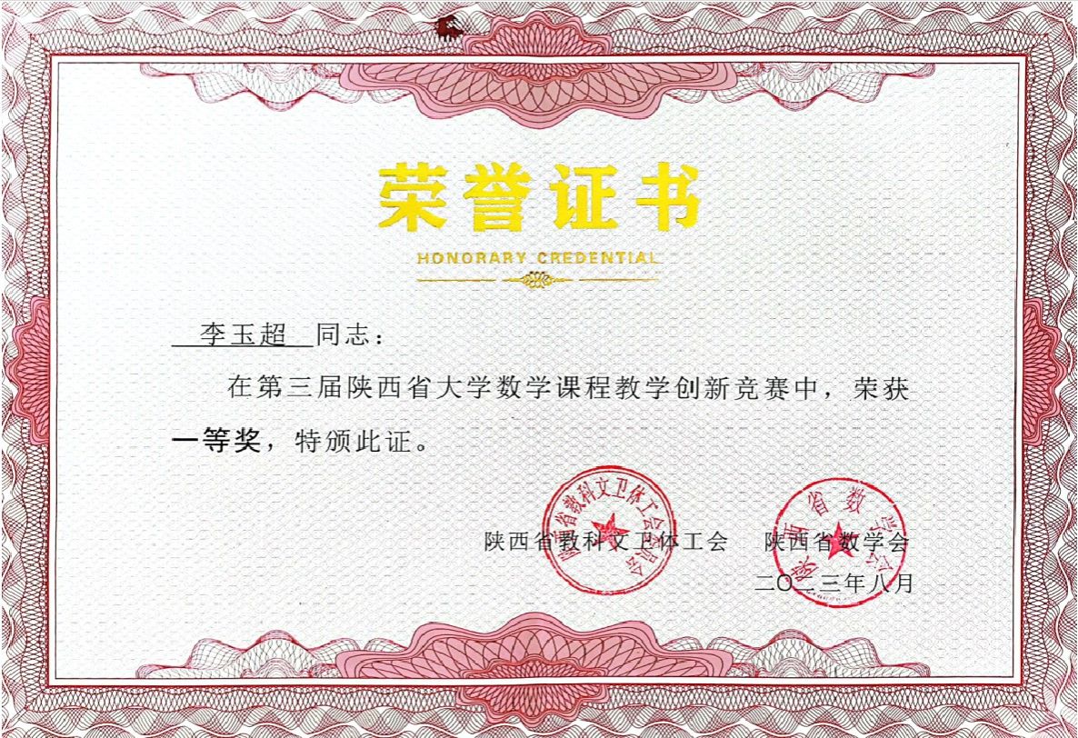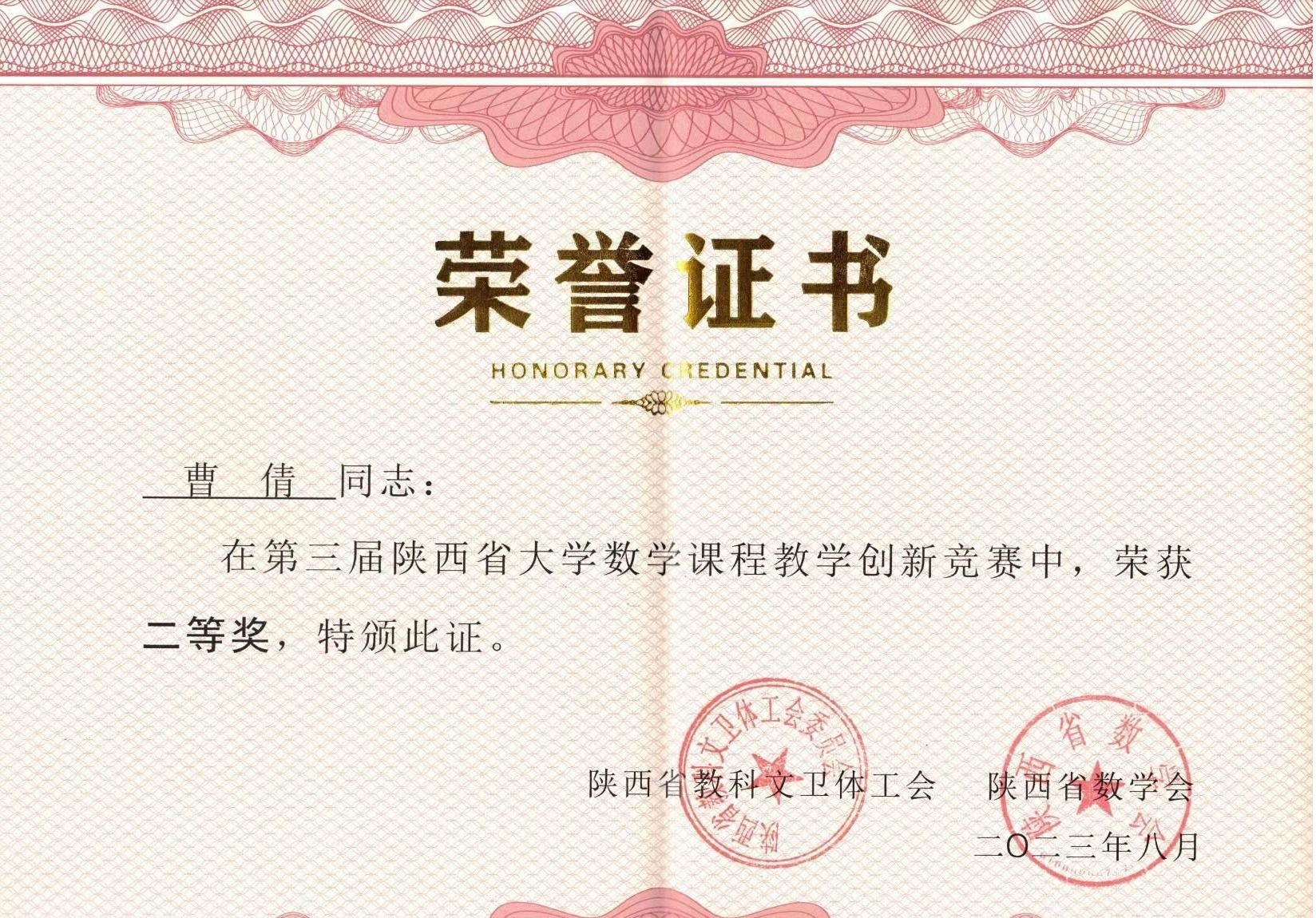 8月19日,第三届陕西省大学数学课程教学创新竞赛活动颁奖仪式暨第四届陕西高校大学数学课程建设与教学改革研讨会在榆林学院举行,KY开元数学与统计教学发展中心三位教师代表均获奖,其中李玉超老师获一等奖,曹倩、刘佳两位老师获二等奖。