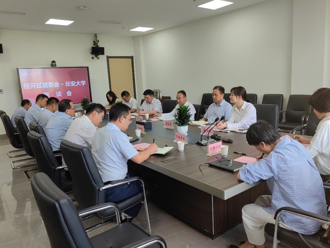 9月14日下午,经开区党工委委员、管委会副主任杨剑一行来校交流,KY开元党委常委、副校长王建伟出席座谈会。会议由社会合作处处长杨红斌主持。