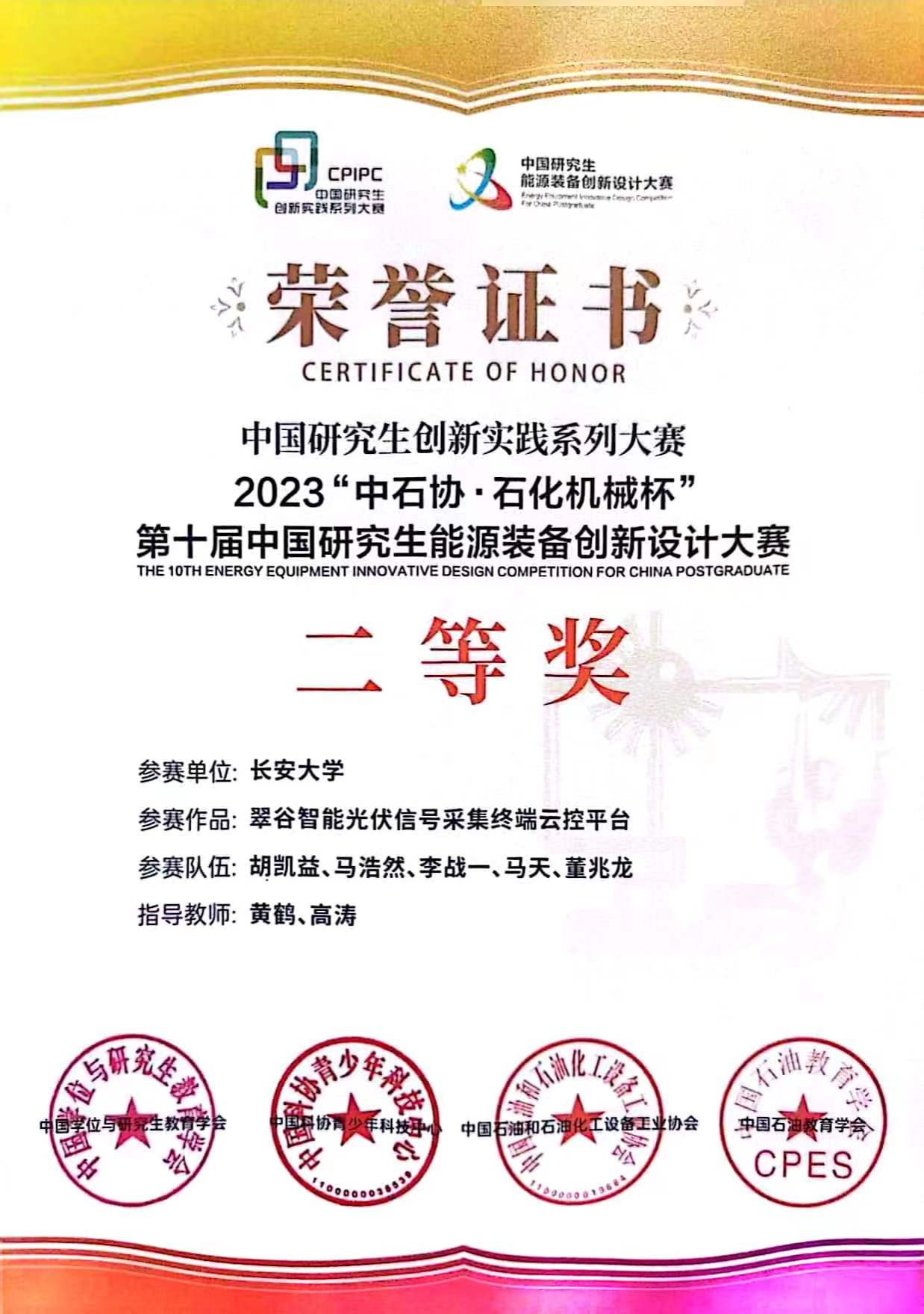 9月17日,第十届中国研究生能源装备创新设计大赛全国总决赛在中国石油大学(华东)落下帷幕。KY开元由电子与控制工程学院黄鹤教授和数据科学与人工智能研究院高涛教授联合指导,研究生胡凯益、马浩然、李战一、马天、董兆龙完成的作品“翠谷智能光伏信号采集终端云控平台”获全国二等奖。