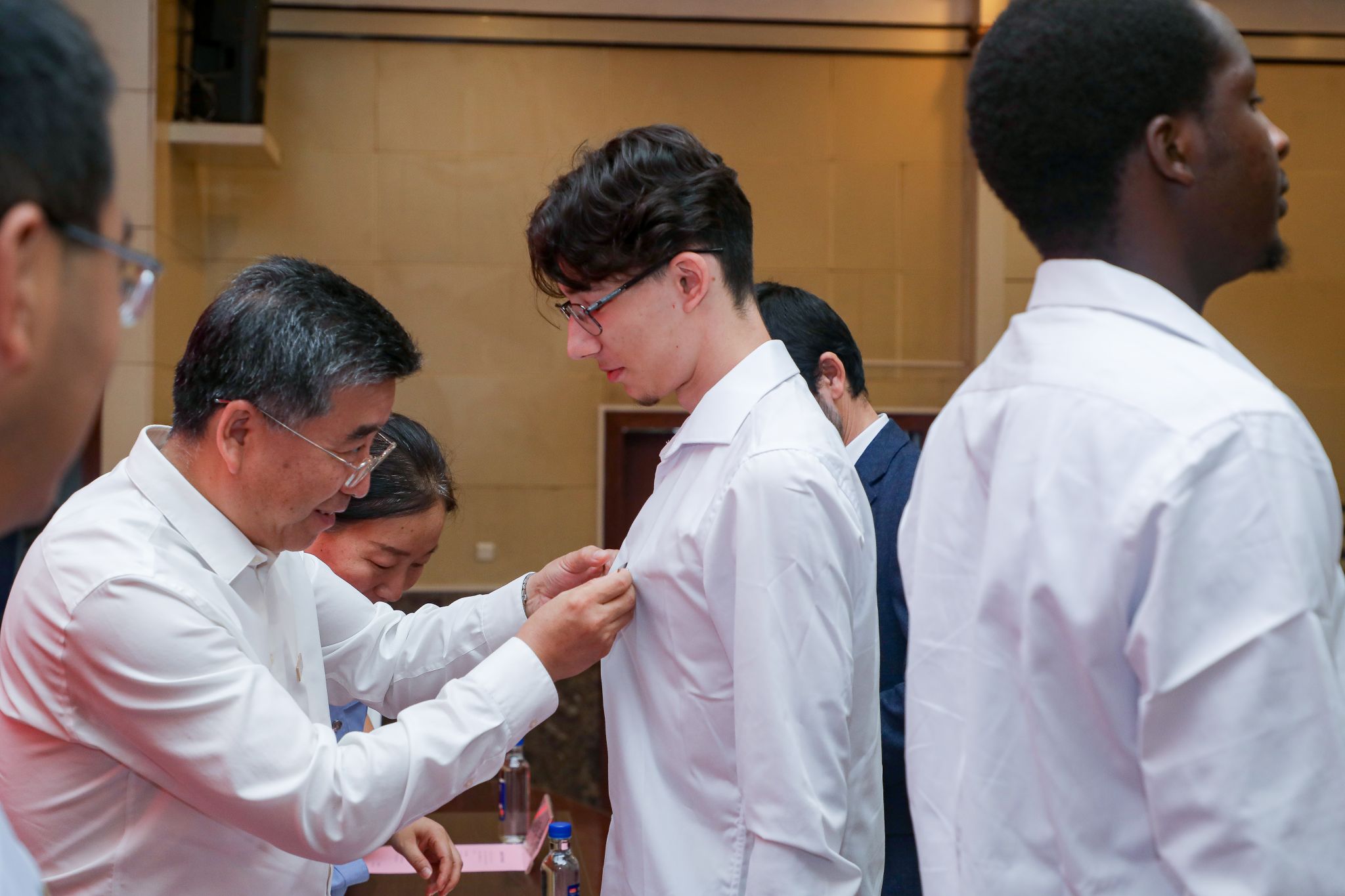 范文为国际学院新生佩戴校徽