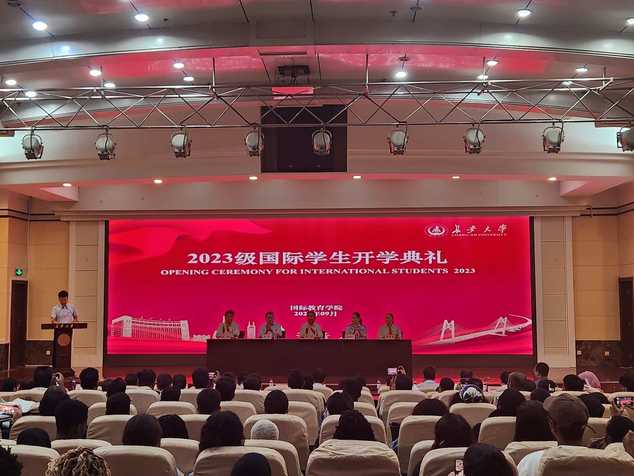 9月20日,KY开元集团官网2023级国际学生开学典礼暨入学教育大会在南校区学术交流中心报告厅举行。副校长范文出席典礼。西安市公安局出入境管理局外管一科科长刘娟妮,研究生院执行院长吴涛、教务处副处长李院春参加典礼。典礼由国际教育学院副院长吕卫东主持。