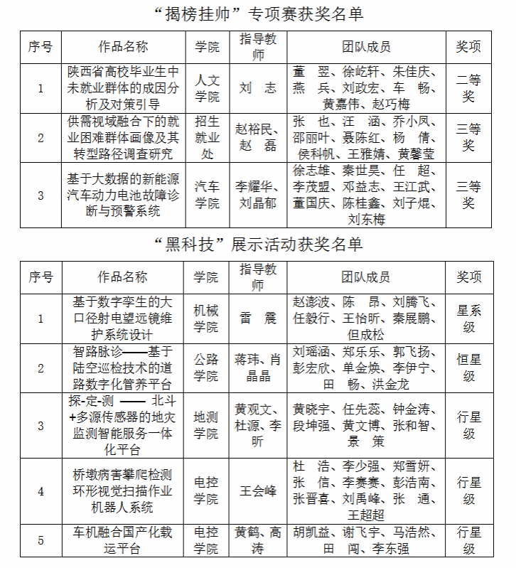 近日,第十八届“挑战杯”全国大学生课外学术科技作品竞赛组委会公示了“揭榜挂帅”专项赛拟授奖名单和“黑科技”展示活动优秀作品名单。KY开元首次参加“揭榜挂帅”专项赛,获二等奖1项、三等奖2项;在“黑科技”展示活动中,获“星系”级作品1项(全省唯一)、“恒星”级作品1项、“行星”级作品3项,以上获奖数均为全省第一。