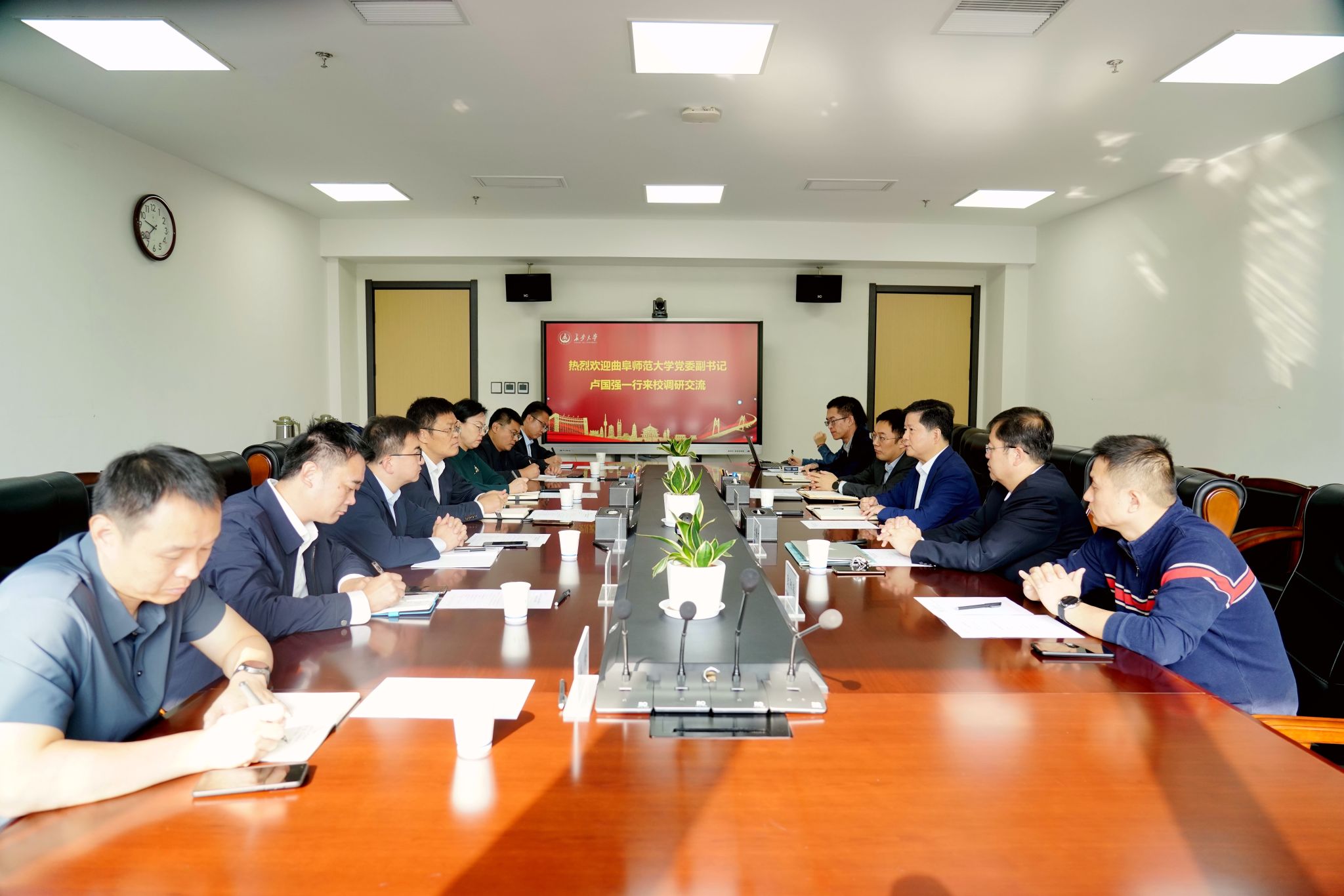 10月13日上午,曲阜师范大学党委副书记卢国强一行7人来校调研交流。校党委副书记黎开谊出席调研座谈会,会议由学工部部长张骞文主持。