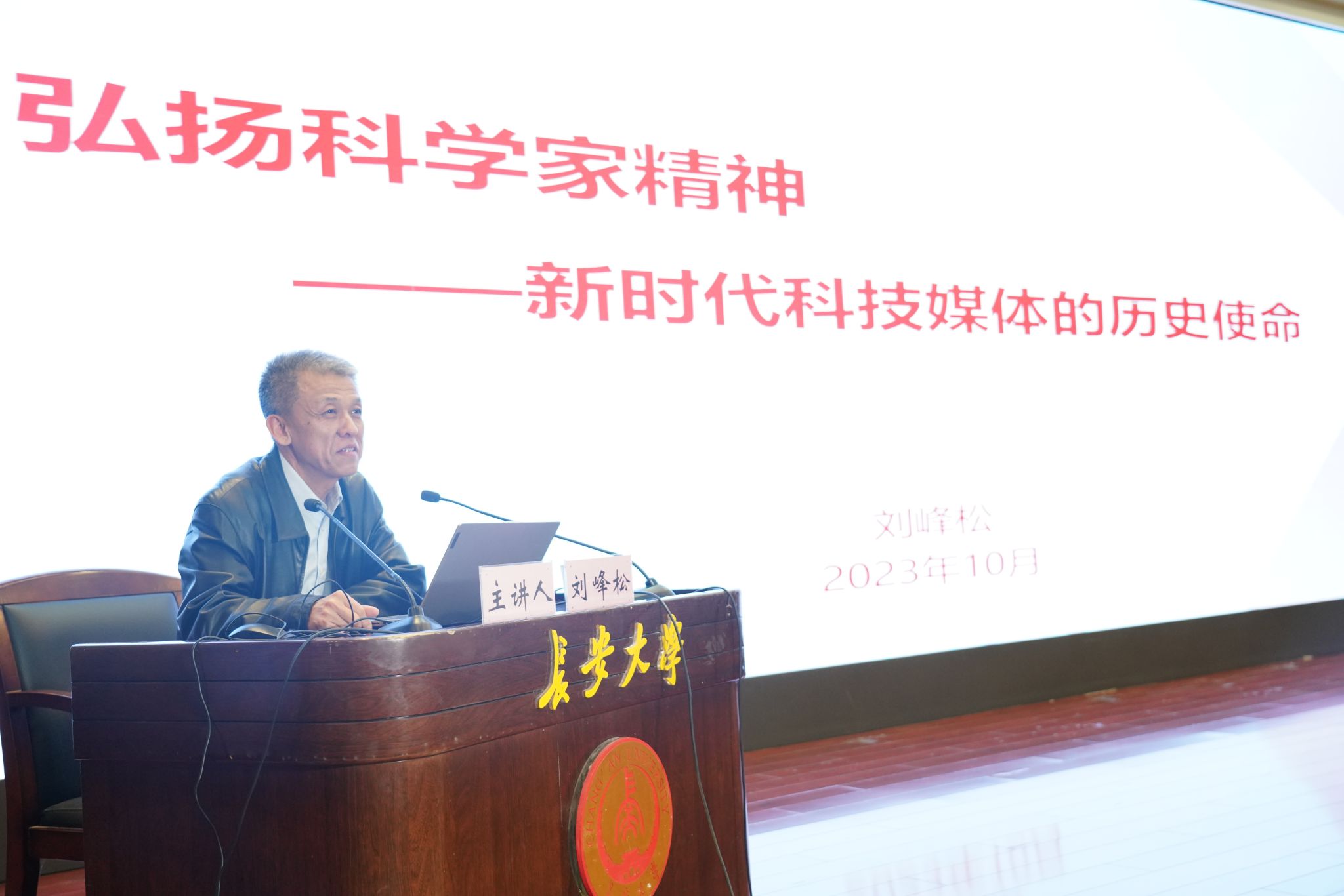 刘峰松以《弘扬科学家精神——新时代科技媒体的历史使命》为题,对中国共产党人的精神谱系与科学家精神的内涵进行了解读,分享了几位著名科学家矢志报国的感人故事,并围绕新时代宣传思想工作的历史使命、科技媒体如何大力弘扬科学家精神等进行了案例分享。
