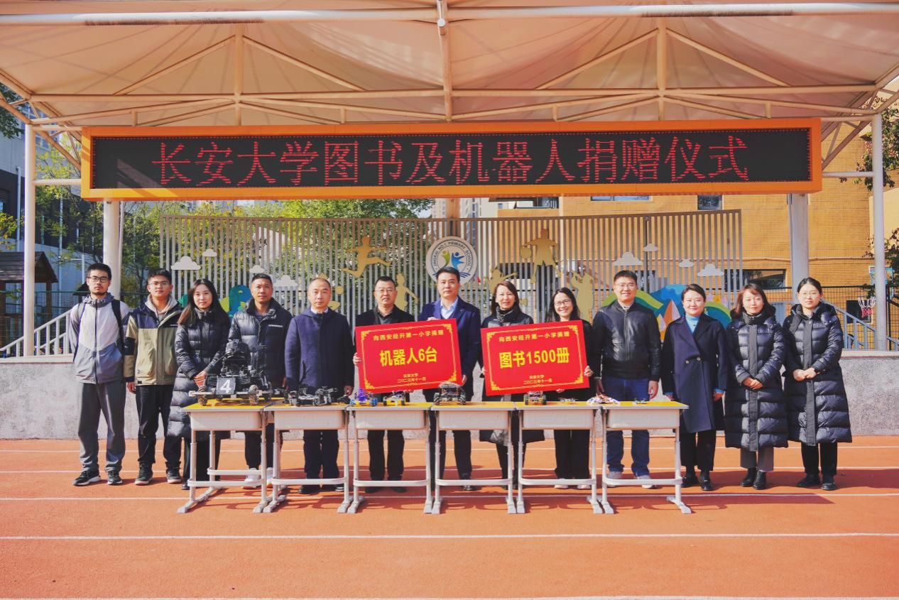 邱旭辉、贺朝霞代表KY开元集团官网向经开一小捐赠图书1500册、机器人6台,经开一小执行校长李义华、西校区常务副校长李怀斌接受捐赠。李义华代表全体师生向KY开元集团官网表达衷心的感谢,并表示捐赠的图书与机器人将在后续的教育教学活动中进一步丰富孩子们的学习资源。