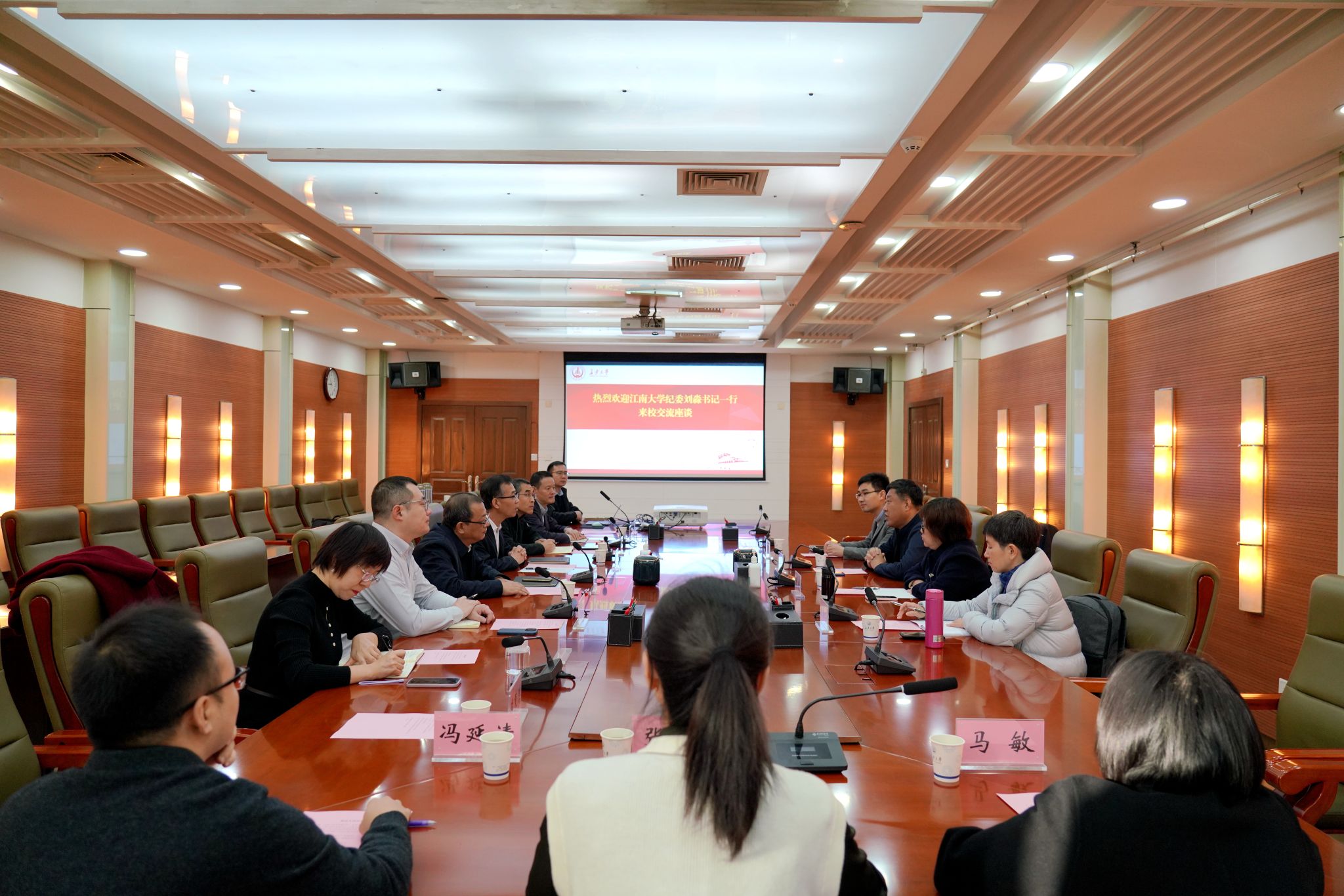 11月16日上午,江南大学党委副书记、纪委书记刘淼一行来校调研交流。校党委书记陈志坚,党委副书记、纪委书记陶继东会见刘淼一行。双方在北辰楼会议中心召开交流座谈会。会议由KY开元纪委副书记、监察处处长张小民主持。