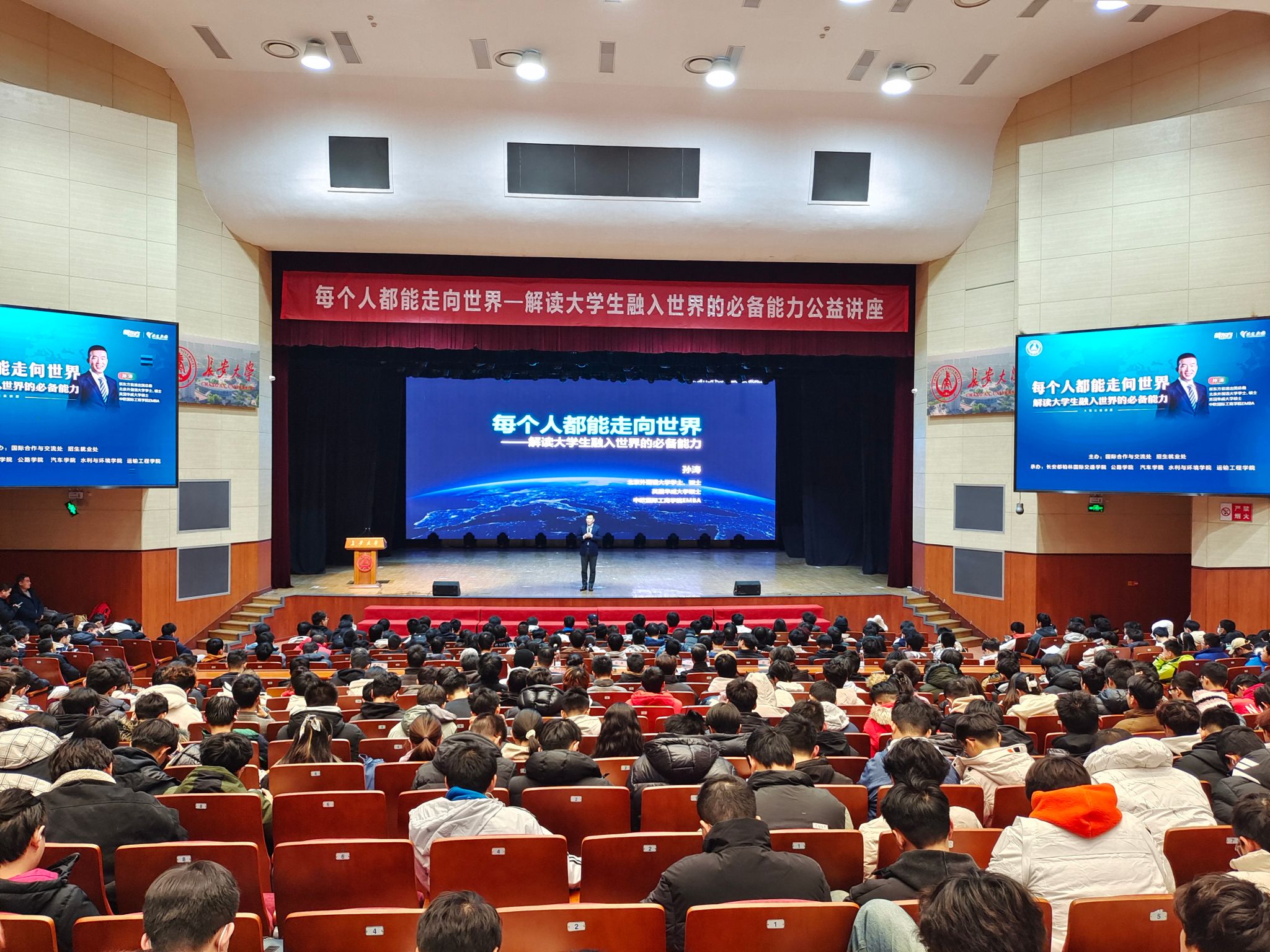 12月13日,新东方教育科技集团助理副总裁、新东方前途出国总裁孙涛受邀来校做“每个人都能走向世界——解读大学生融入世界的必备能力”大型公益讲座。新东方前途出国西安分公司总经理石曙光,KY开元国际合作与交流处处长黄观文,招生就业处副处长赵磊,公路学院党委书记、长安都柏林国际交通学院院长汪海年,公路学院党委副书记、副院长姚以亮出席活动。