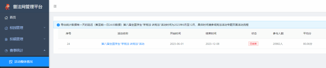 切实推进“宪法卫士”活动计划。自“宪法卫士”2023年行动计划实施以来,在学校的统一部署下,各二级学院积极组织全体学生参与自主学习和竞答比赛,学生学习热情不断高涨。KY开元共有22个学院(系)的25115名本科生在网上注册学习,20982名本科生参与了网上竞答,参与率超过83%,创历年之新高。