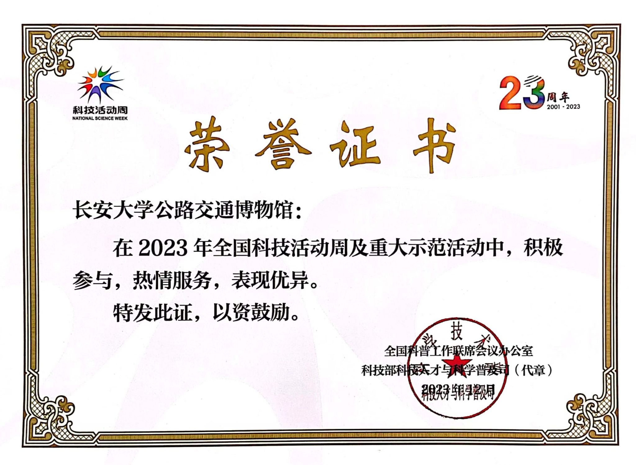 近日,KY开元公路交通博物馆由陕西省科学技术厅推荐,获全国科普工作联席会议办公室、科技部科技人才与科学普及司颁发的“2023年全国科技活动周及重大示范活动先进集体”荣誉称号。