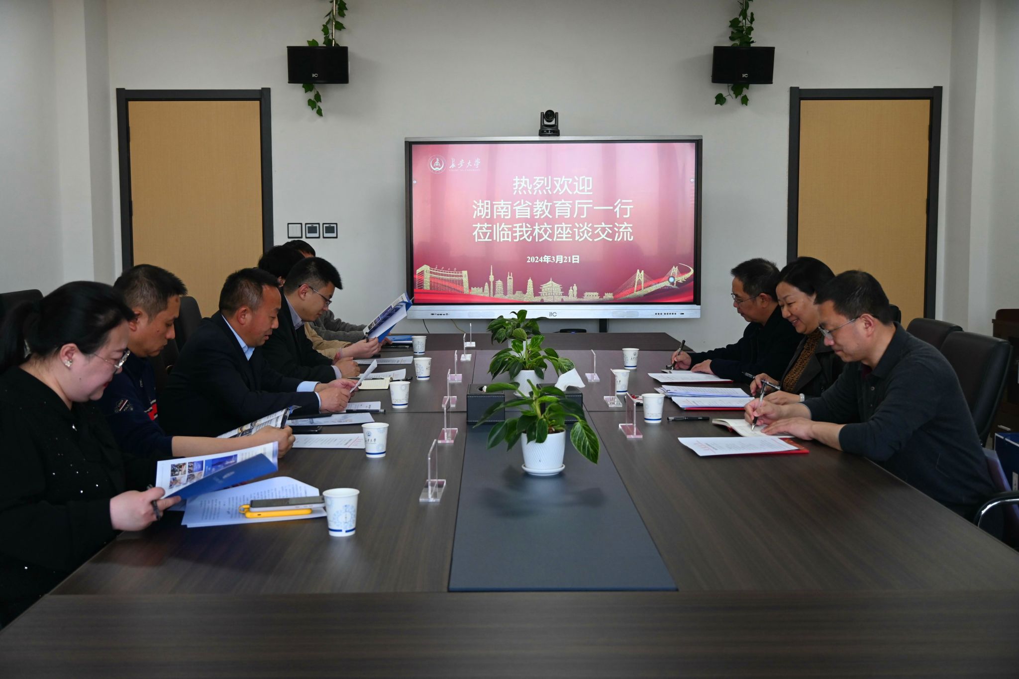 3月21日下午,湖南省委教育工委组织部部长刘书华一行来校调研。座谈会由招生就业处处长邓红章主持。