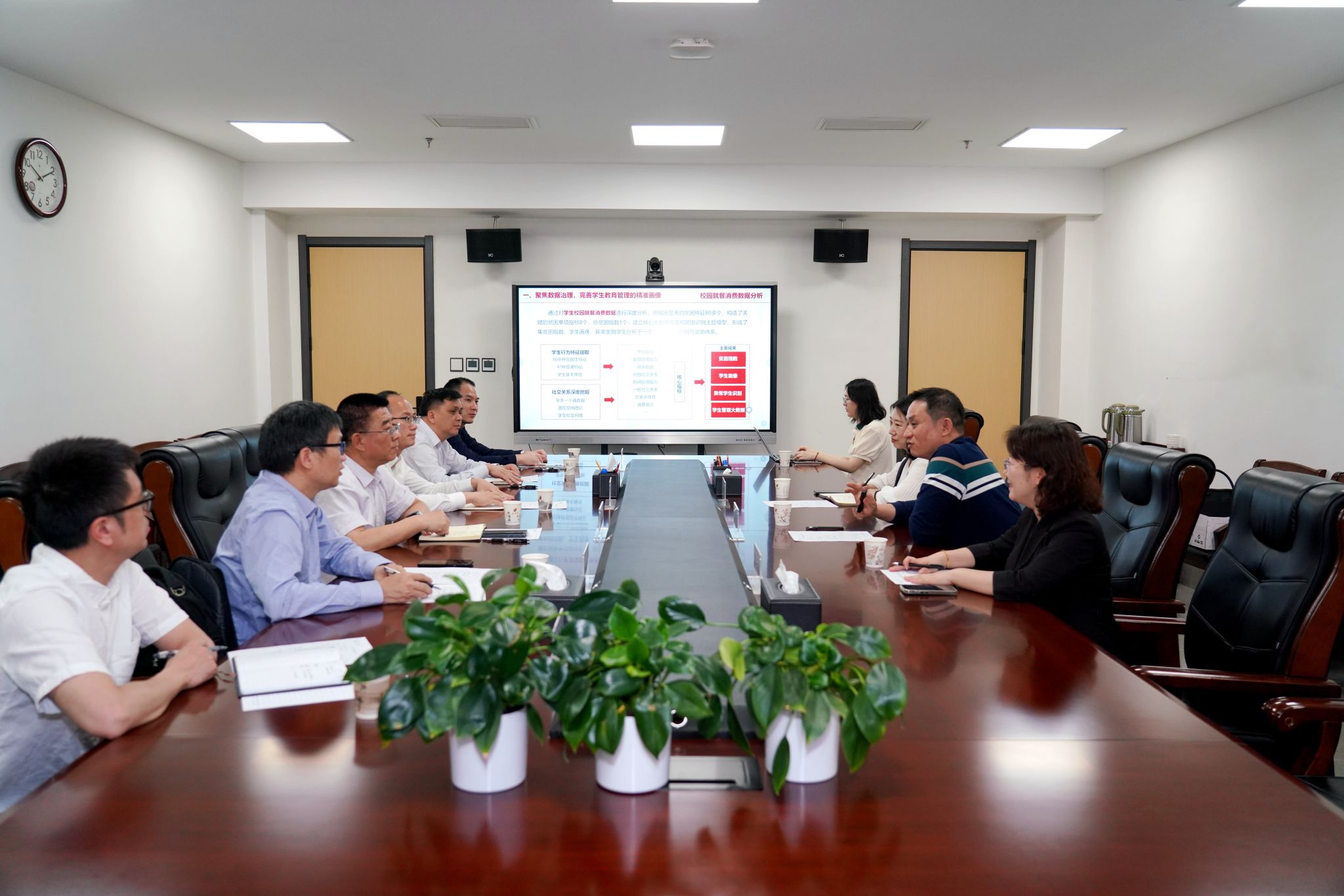 学生资助中心(学生事务服务中心)主任欧阳韬汇报了KY开元学工信息化建设相关工作,学生社区管理中心副主任郭咏梅就KY开元“一站式”学生社区综合管理模式建设情况作了汇报。双方围绕数字赋能、“一站式”学生社区建设等方面工作展开了深入交流。