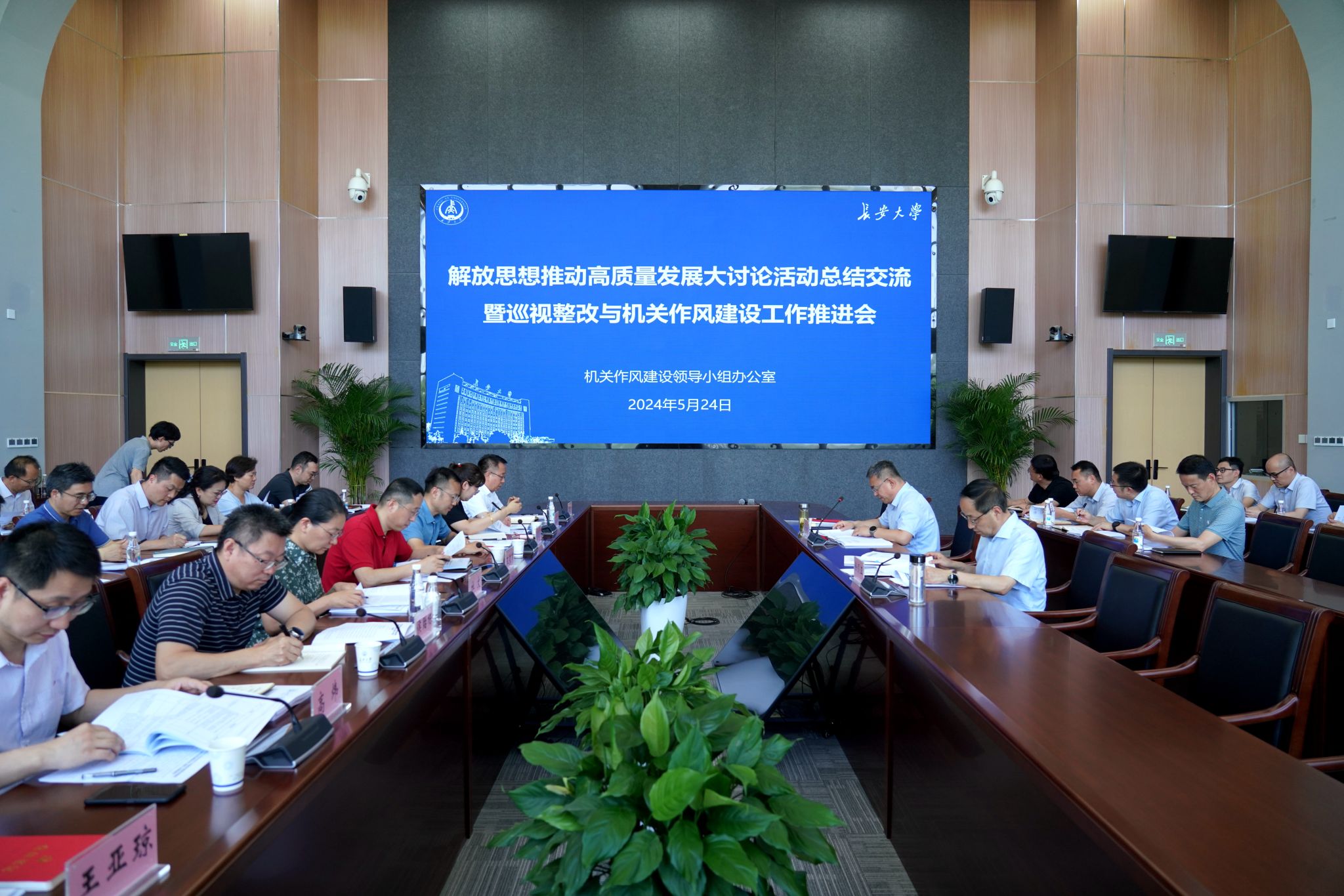 5月24日下午,学校召开解放思想推动高质量发展大讨论活动总结交流暨巡视整改与机关作风建设工作推进会。校党委副书记徐引正出席会议并讲话,机关职能部门和直属单位主要负责人参加会议。会议由机关党委书记李金和主持。
