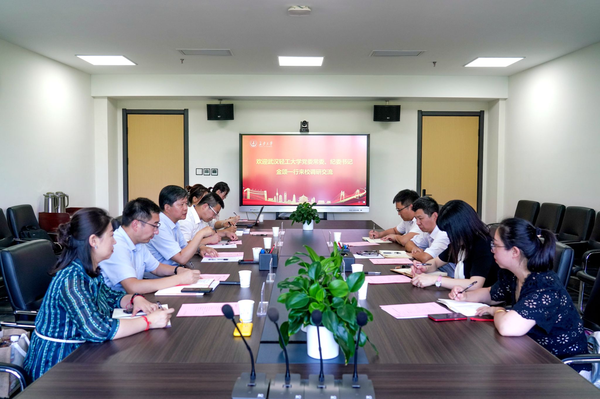 6月18日下午,武汉轻工大学党委常委、纪委书记金颂一行4人来校就学生工作开展调研交流。KY开元党委副书记黎开谊出席座谈会,学工部、研工部相关负责人参加会议。会议由研工部部长高天智主持。