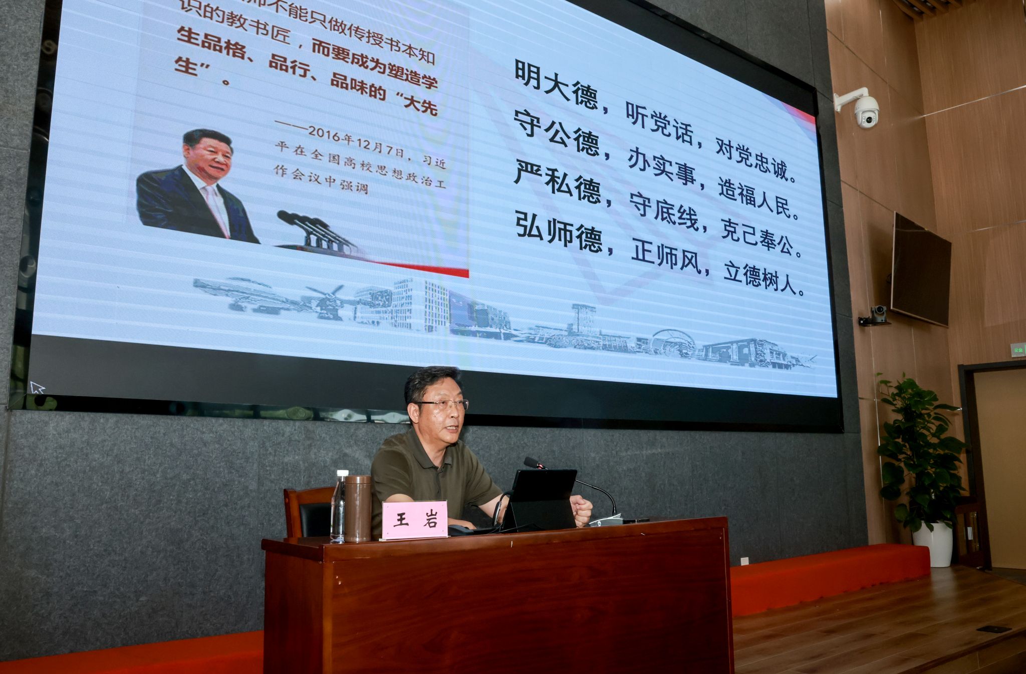 为贯彻落实党中央、国务院关于全面深化新时代教师队伍建设改革的决策部署,大力弘扬和传承教育家精神,持之以恒抓好教师思想政治教育和师德师风建设工作,6月24日下午,学校举办“师德大讲堂”,邀请南京航空航天大学马克思主义学院教授、博士生导师、教育部长江学者特聘教授、国家级教学名师王岩教授作题为《新时代师德师风建设的理与路》的专题报告。报告由校长助理杜强主持。