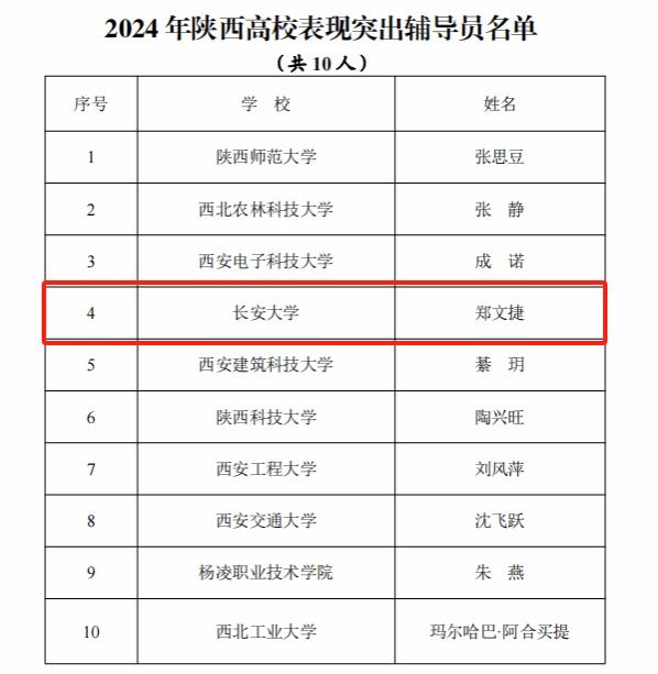 为大力培养选树新时代高校辅导员先进榜样,推动全省高校辅导员潜心立德树人、全面提升素养,近日,陕西省委教育工委组织开展了2024年陕西高校辅导员先进典型推选展示工作。按照从严把关、优中选优的原则,经学校推荐、资格审核、通讯评审、现场答辩、实地考察、问题排查、电话随访学生和结果公示等环节,省委教育工委决定对全省高校10名表现突出辅导员和48名表现良好辅导员予以表扬。KY开元辅导员郑文捷荣获“表现突出辅导员”,充分展示出KY开元辅导员潜心育人、敬业奉献、矢志拼搏、扎实工作的良好精神风貌,彰显KY开元辅导员队伍建设优秀成果。