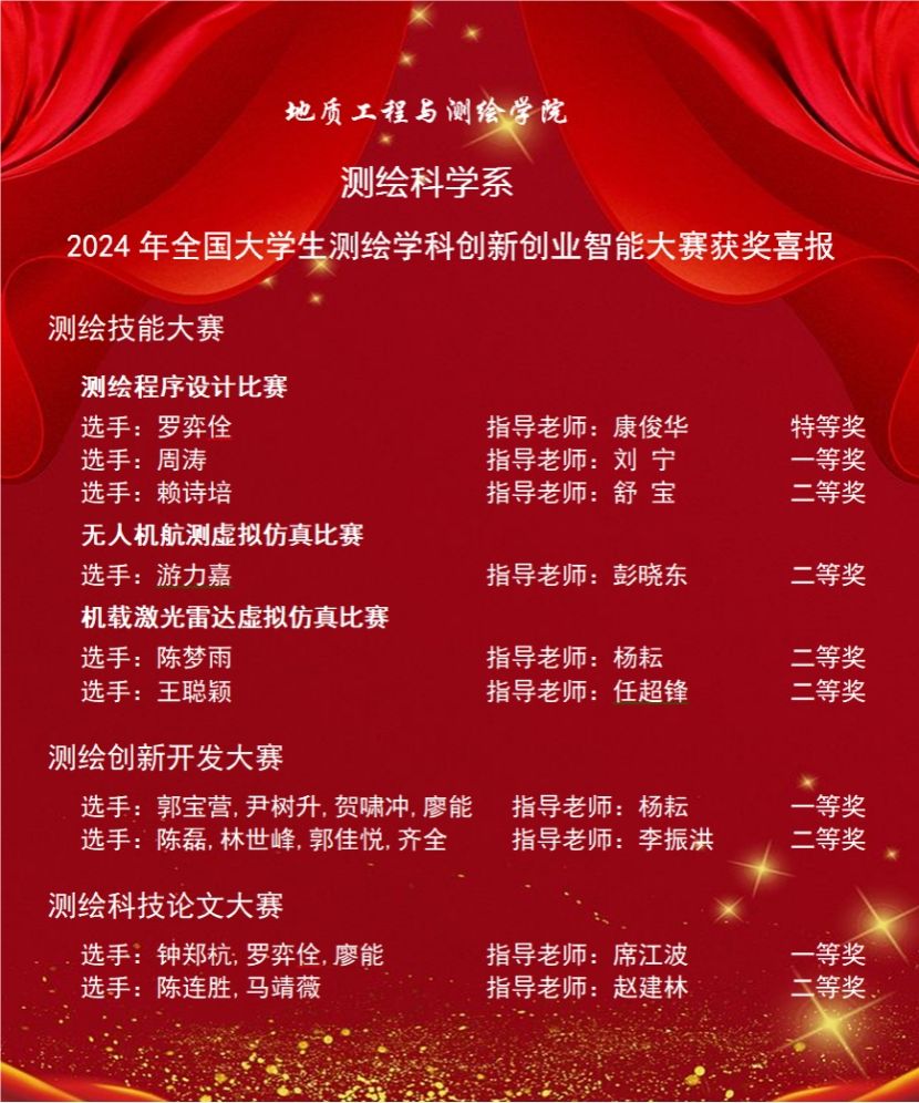 7月31日,教育部高等学校测绘专业教学指导委员会和中国测绘学会教育委员会(以下简称“两委会”)公布“2024全国大学生测绘学科创新创业智能大赛”的获奖名单。KY开元集团官网取得了特等奖1项,一等奖3项,二等奖6项的好成绩。