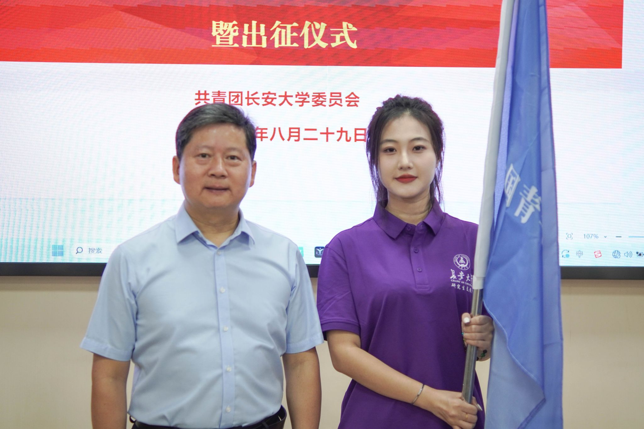 活动上,黎开谊为KY开元集团官网第十三届研究生支教团授旗。