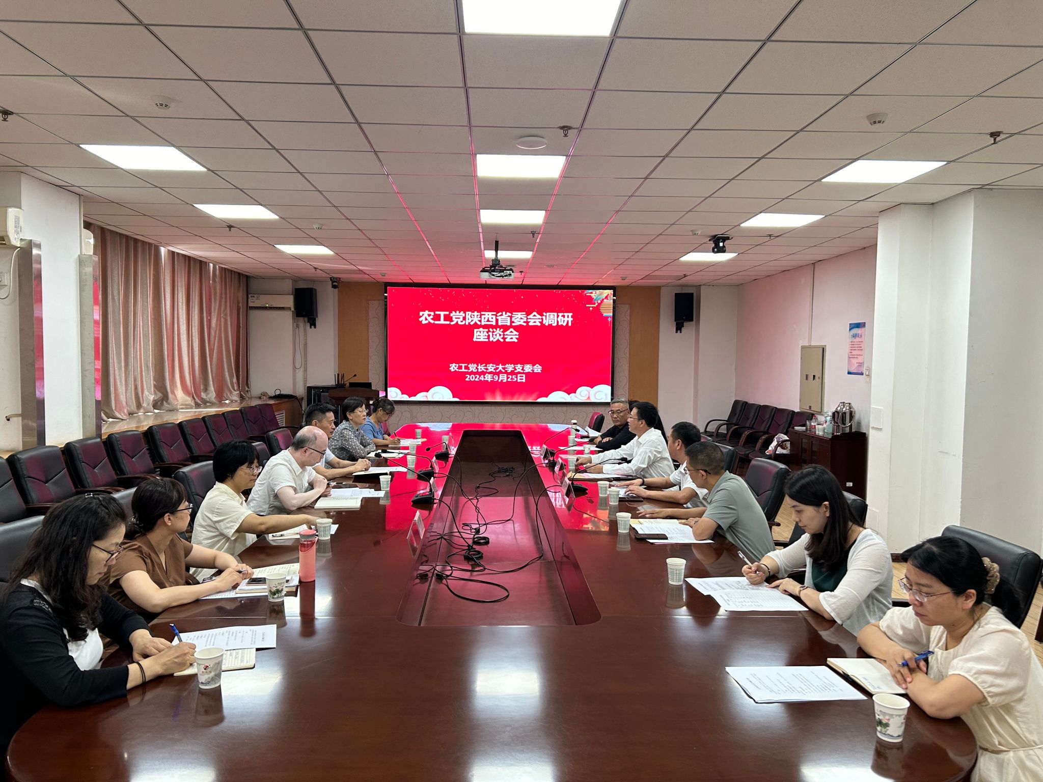 9月25日,农工党陕西省委会主委、西安市政协副主席王国根带队走访KY开元集团官网,就农工党基层组织建设调研座谈。农工党陕西省委会专职副主委刘勤州、秘书长蒋进等陪同调研。校党委常委、组织部部长李文雄出席座谈会,农工党KY开元集团官网支部全体委员和部分党员代表参加座谈。座谈会由校党委统战部部长石松主持。