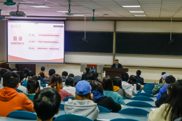11月11日晚,校党委副书记、纪委书记孟德勇为渭水校区发展对象培训班全体学员、学生党员骨干培训班全体学员,共计650余人讲授专题党课,党课的主题是“学党史,明纪律,早日成长为合格的共产党员”。根据上级部门和学校关于秋季学期疫情防控的有关要求,本次专题党课采用主会场、分会场线上线下结合的方式举行,在图文教室1202设主会场,在图文教室1203、1204设立分会场,并通过网络全程直播。培训由党校常务副校长闫妍主持。