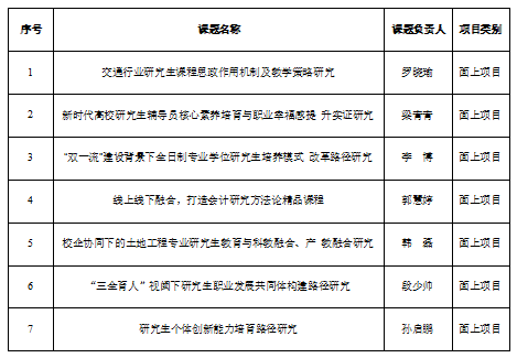 中国学位与研究生教育学会于2020年9月启动研究课题申报工作,主要针对我国研究生教育中的重大紧迫和长期性基础性问题开展课题研究。学校高度重视,积极组织、推荐相关教师开展课题申报。