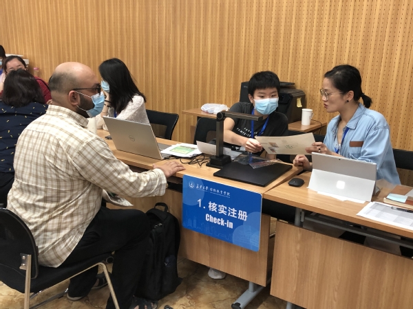 为确保集中迎新顺利进行,选拔和组织多名优秀国际学生组成志愿者团队,他们本着“安全、热情、高效、细致”的工作原则,服务迎新一线,获得师生一致好评。在注册报到现场,设置了“一站式”服务中心,缴费、签证、住宿等入校手续办理流程简便有序,确保高效迎新。