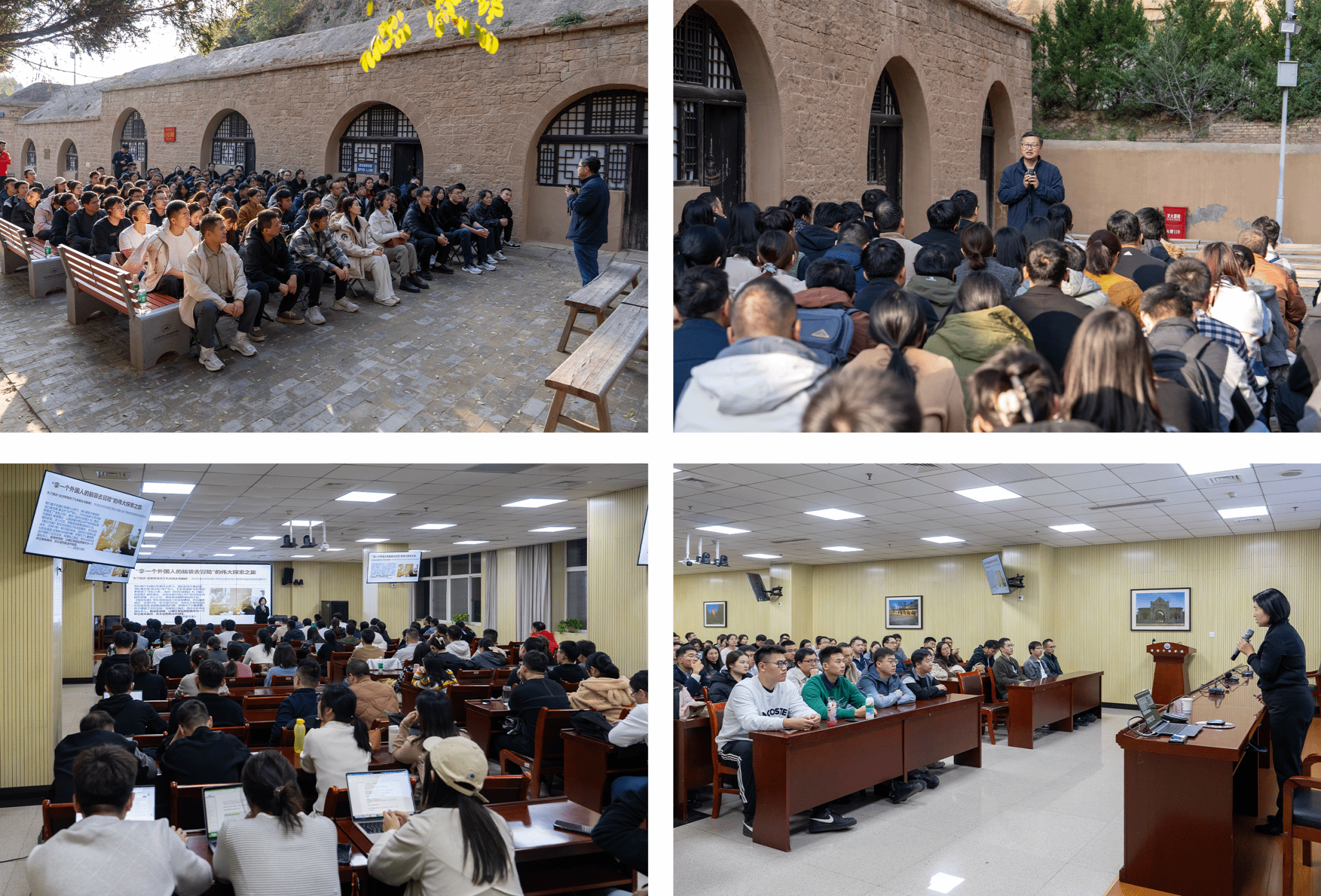 本次研修采用理论研学、现场参观与实践教学相结合的方式,共开展2场专题报告、1场现场教学活动,前往4个革命旧址与革命文化场馆实地研习。理论研学阶段,青年教师分别聆听延安革命纪念馆党委书记、馆长刘妮题为“当冼星海‘遇到’马克思—《黄河大合唱》诞生的故事”和中国延安干部学院冯建玫教授题为“白求恩精神与共产党人价值追求”的专题报告,通过大量的图片与翔实的案例,青年教师从英雄先辈的光荣事迹中汲取了精神力量,深刻理解了革命精神的时代价值和现实意义。实践教学阶段,延安大学张文生副教授在杨家岭窑洞前生动讲述了“毛泽东与黄炎培纵论历史周期率”,青年教师在故事中重温了革命历史,并深刻地理解了中国共产党人的初心和使命,以及他们为跳出历史周期率所作的不懈努力和取得的伟大成就。实地研习阶段,青年教师分别赴宝塔山、延安革命纪念馆、杨家岭革命旧址、王家坪革命旧址参观学习,全方位感悟跨越时空、历久弥新的伟大延安精神,并从“三山两河”和“一园四区”等方面了解延安的人文历史、风土人情和经济社会发展情况。