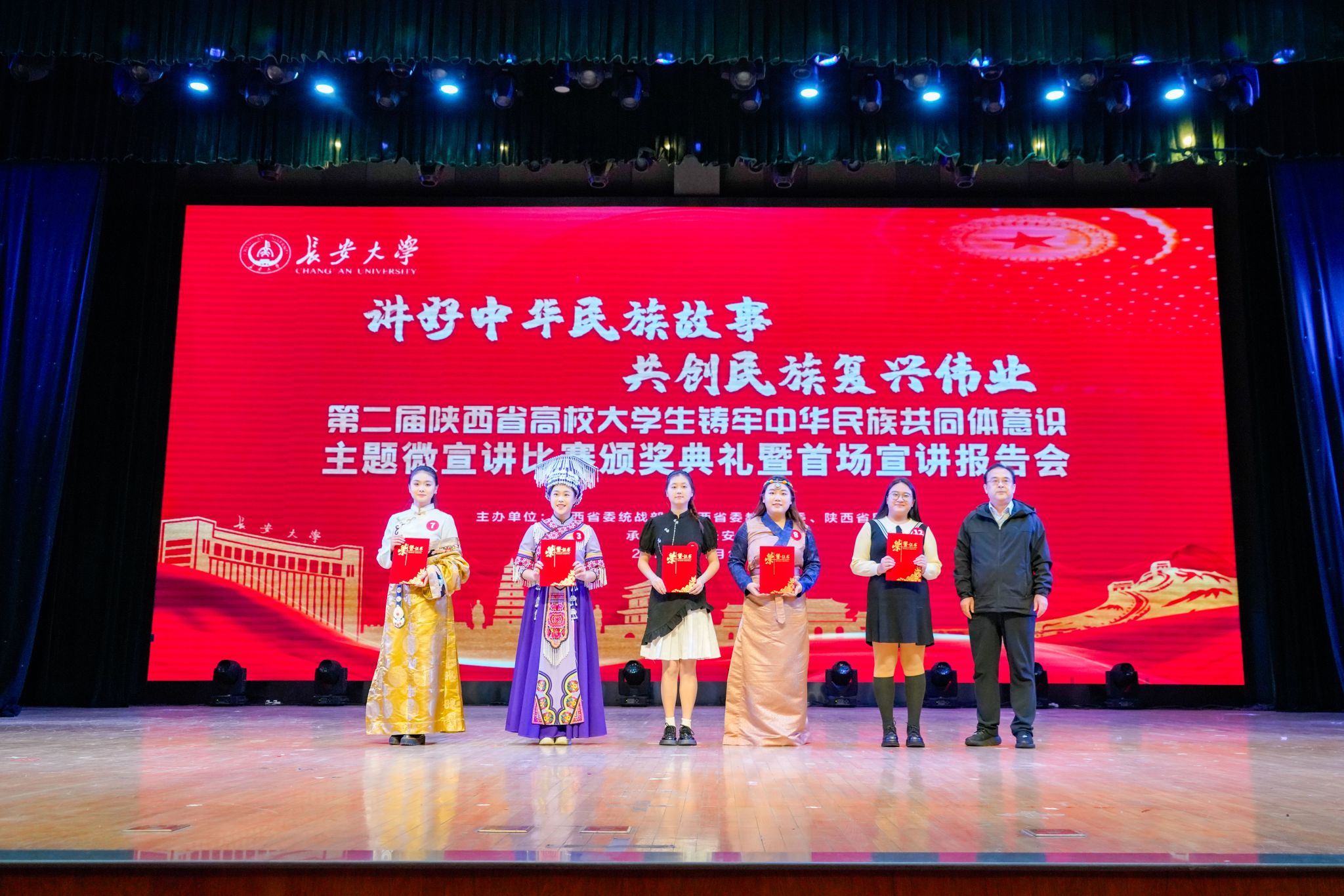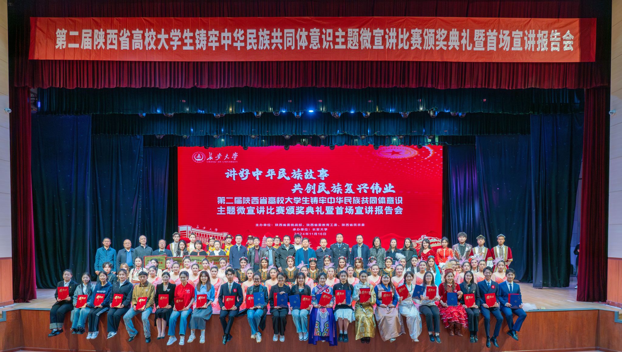 11月16日下午,“讲好中华民族故事,共创民族复兴伟业”第二届陕西省高校大学生铸牢中华民族共同体意识主题微宣讲比赛颁奖典礼暨首场宣讲报告会在北校区长安文化艺术中心举行。省民宗委副主任王晓斐、校党委副书记黎开谊、省民宗委民族一处处长张岩松、省委统战部民族宗教处副处长张鑫、省委教育工委统战部副部长白莹、省民宗委民族一处一级调研员孟旭红出席大会。