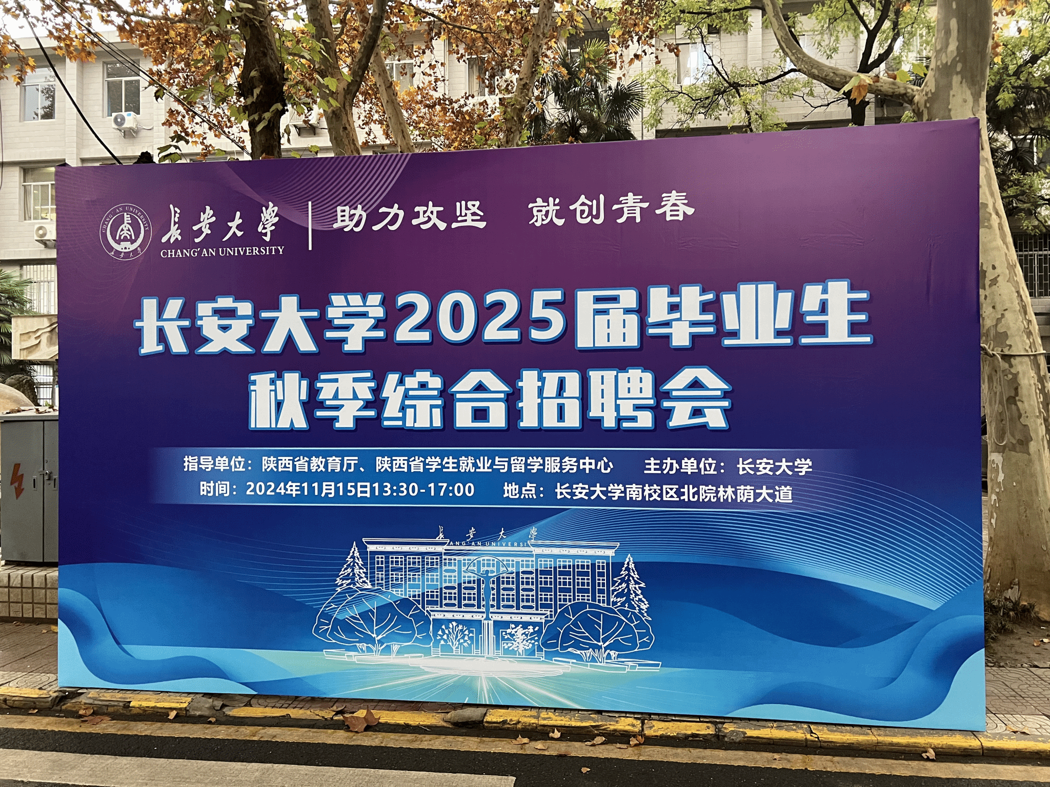 11月15日下午,学校2025届毕业生秋季综合招聘会在南校区北院教学区林荫大道举办。