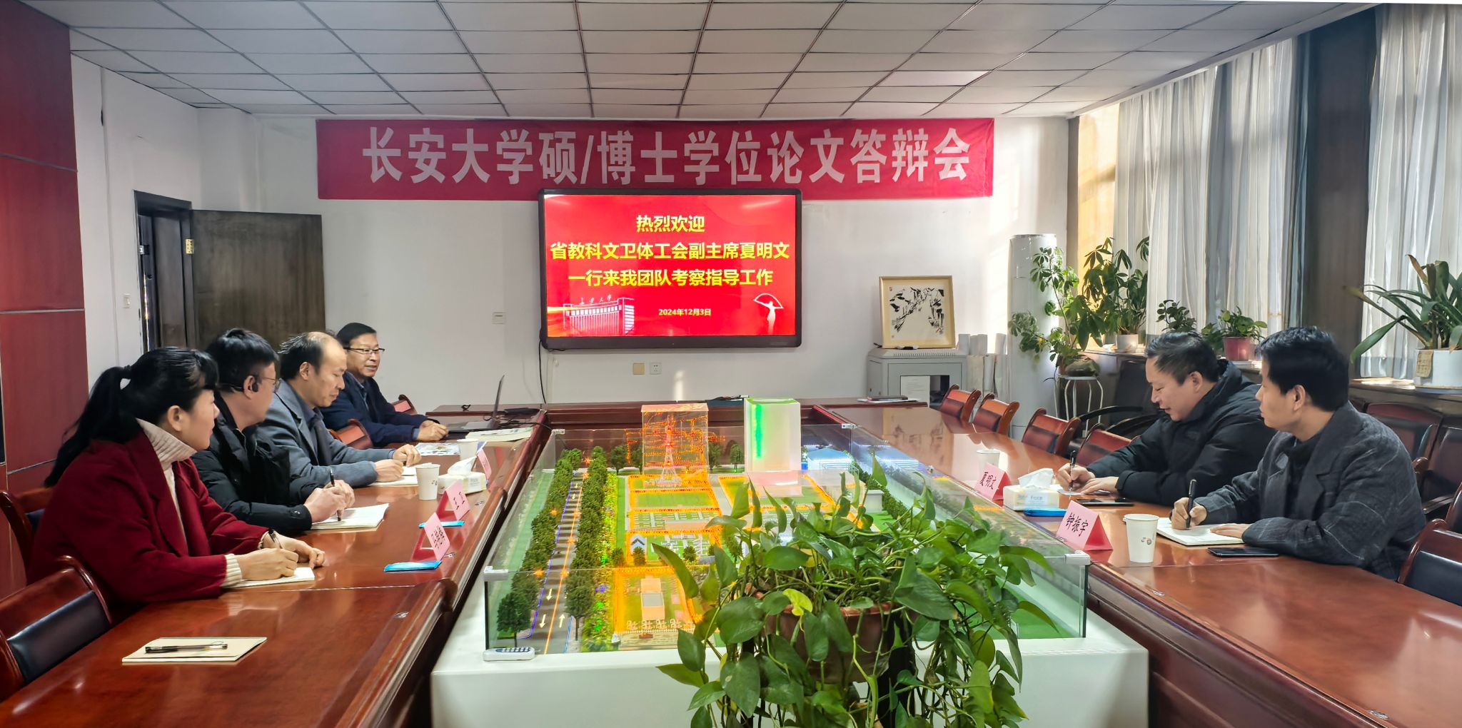 12月3日,陕西省教科文卫体工会副主席夏明文,主任科员钟振宇一行来校对KY开元劳模创新工作室进行考察验收。劳模创新工作室负责人王文科教授,工会主席王卫、副主席杨利锋、马艳梅,水环学院院长白波等参加会议,会议由王卫主持。