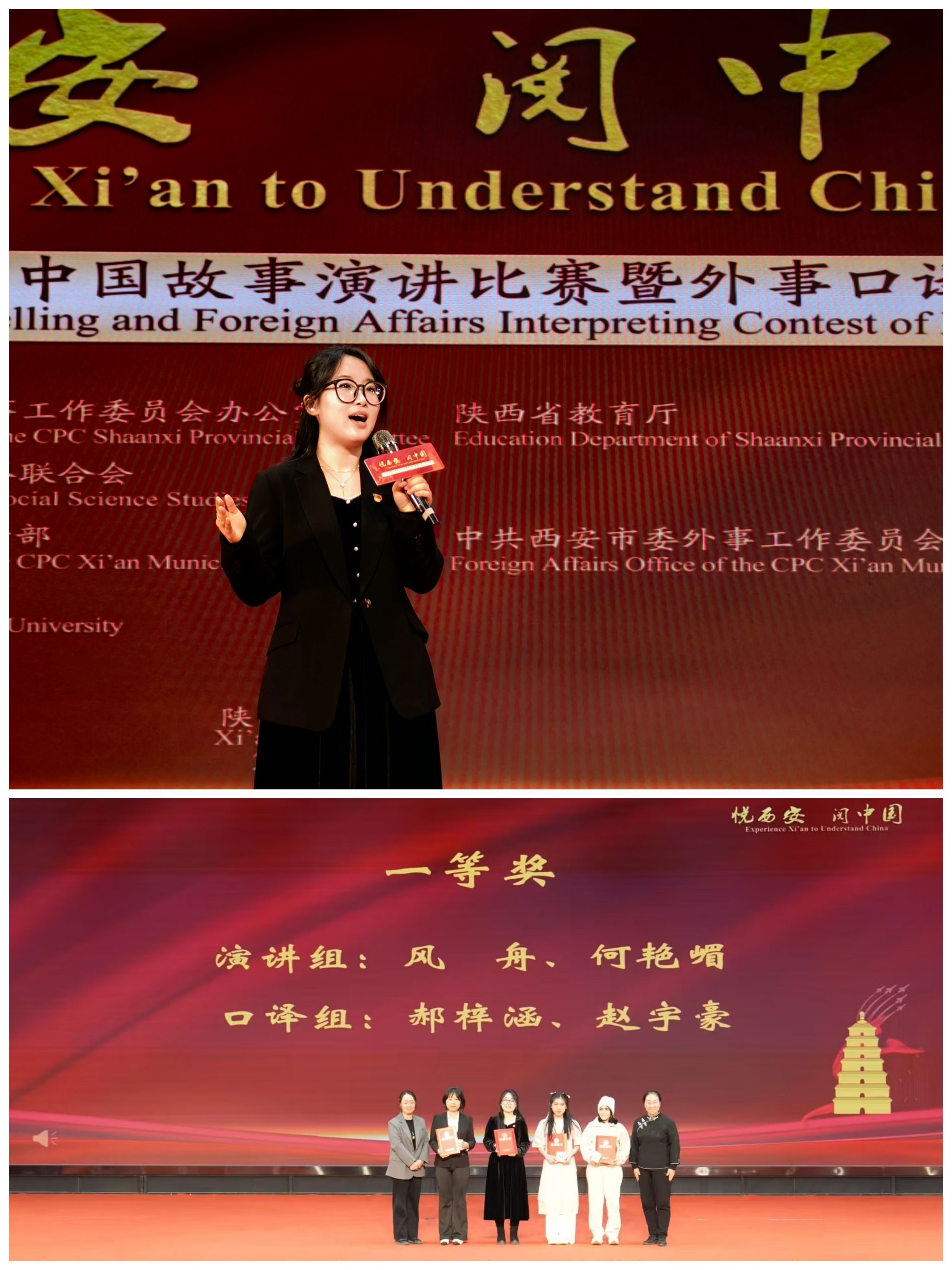 此次赛事分为线上复赛和线下决赛两个阶段。线上复赛于11月13日举行,分为英译汉交替传译和英语演讲两个部分,来自全省多所高校的29名学生展开角逐,郝梓涵以综合成绩91.60分的好成绩顺利晋级线下决赛环节。线下决赛当日,口译组选手围绕西安历史文化和经济发展进行演讲及交替传译,展现了高超的专业水平、语言能力和应变能力。