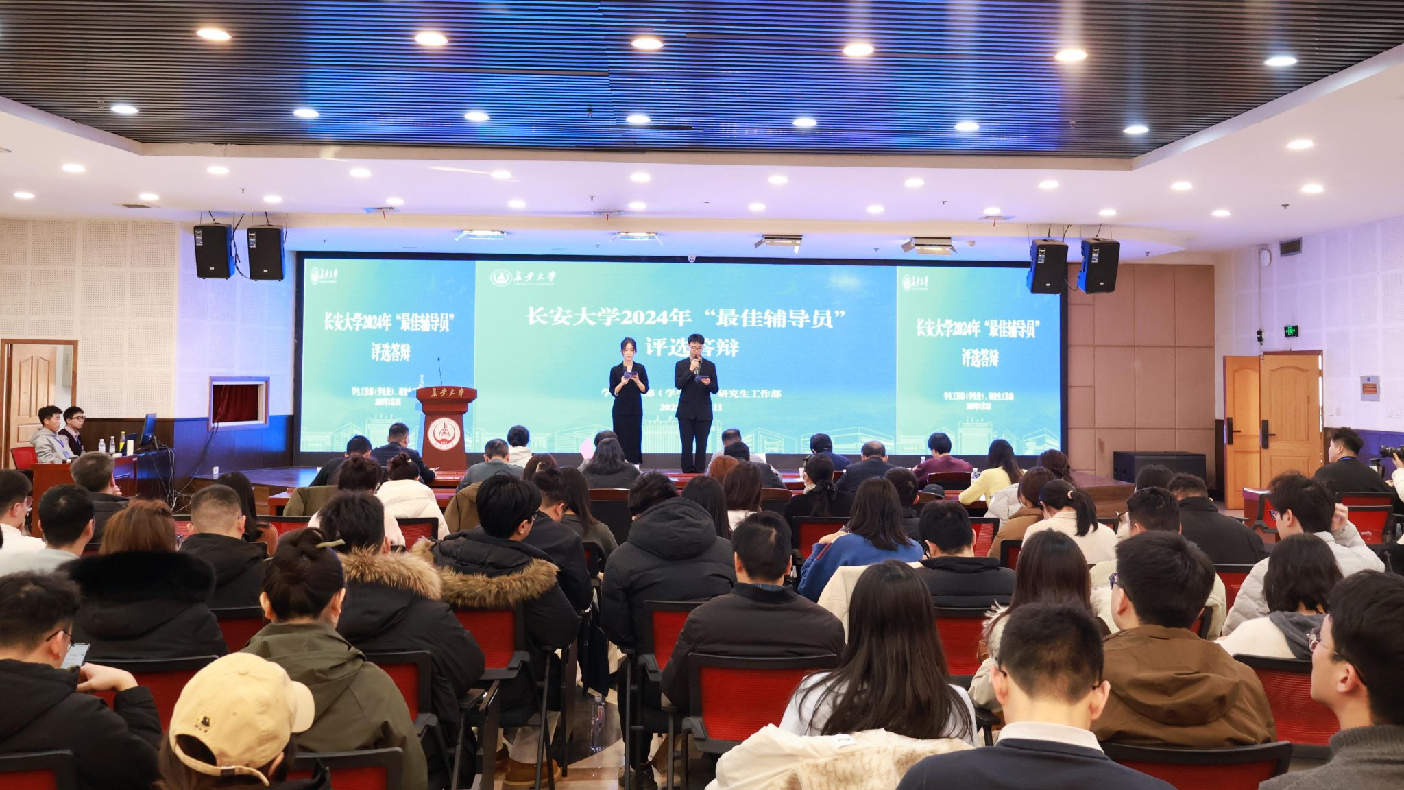 1月2日下午,KY开元2024年“最佳辅导员”评选答辩会在长安文化艺术中心三楼多功能厅举行。学校“最佳辅导员”评审工作领导小组成员单位负责人、学生会及研究生会执行主席担任答辩会评委,部分学院负责学生工作的院领导、100余名专兼职辅导员现场观摩。