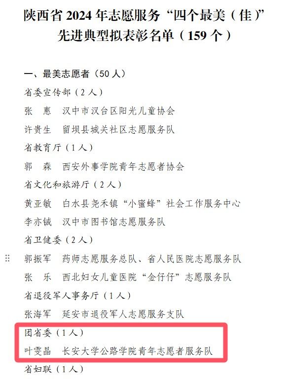 陕西省2024年志愿服务“四个最美(佳)”先进典型拟表彰部分名单