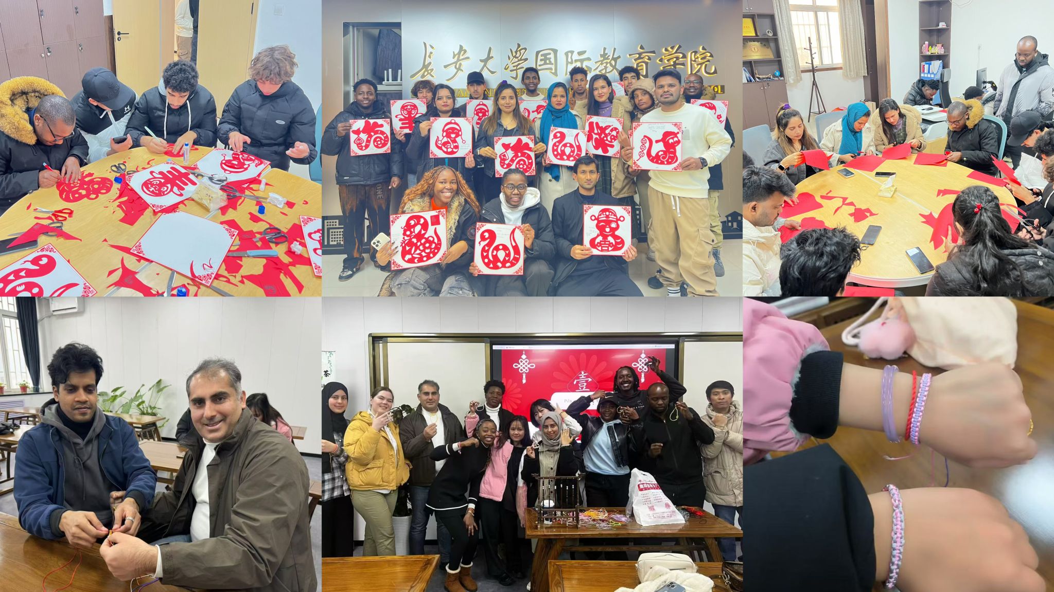 为丰富寒假留校国际学生的日常生活,国际教育学院精心策划11个小型文化体验活动。1月15日,开展“认识中国结”活动,通过文化寓意讲解和现场制作,让来自不同国家的学子,沉浸式感受中国传统手工艺术的独特魅力。1月20日,学院开展“国际学生春节窗花剪纸创作”活动,学生们拿起剪刀,用剪纸刻画自己对中国传统文化的认知和喜爱,作品完成后大家相互交流,合影留念,并在作品上留下了自己的个人签名和不同语言的新春祝福。