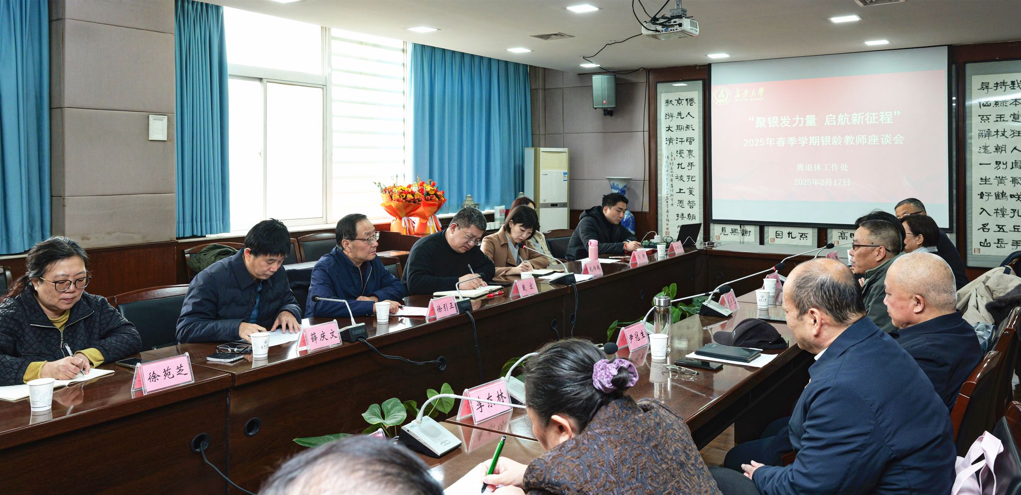 2月17日上午,“聚银发力量 启航新征程”2025年春季学期银龄教师欢送座谈会在南校区学术交流中心第五会议室召开。校党委副书记徐引正出席会议。人事处负责人、离退休工作处全体班子成员和银龄教师代表参加会议。会议由离退休工作处党总支书记戴宏主持。