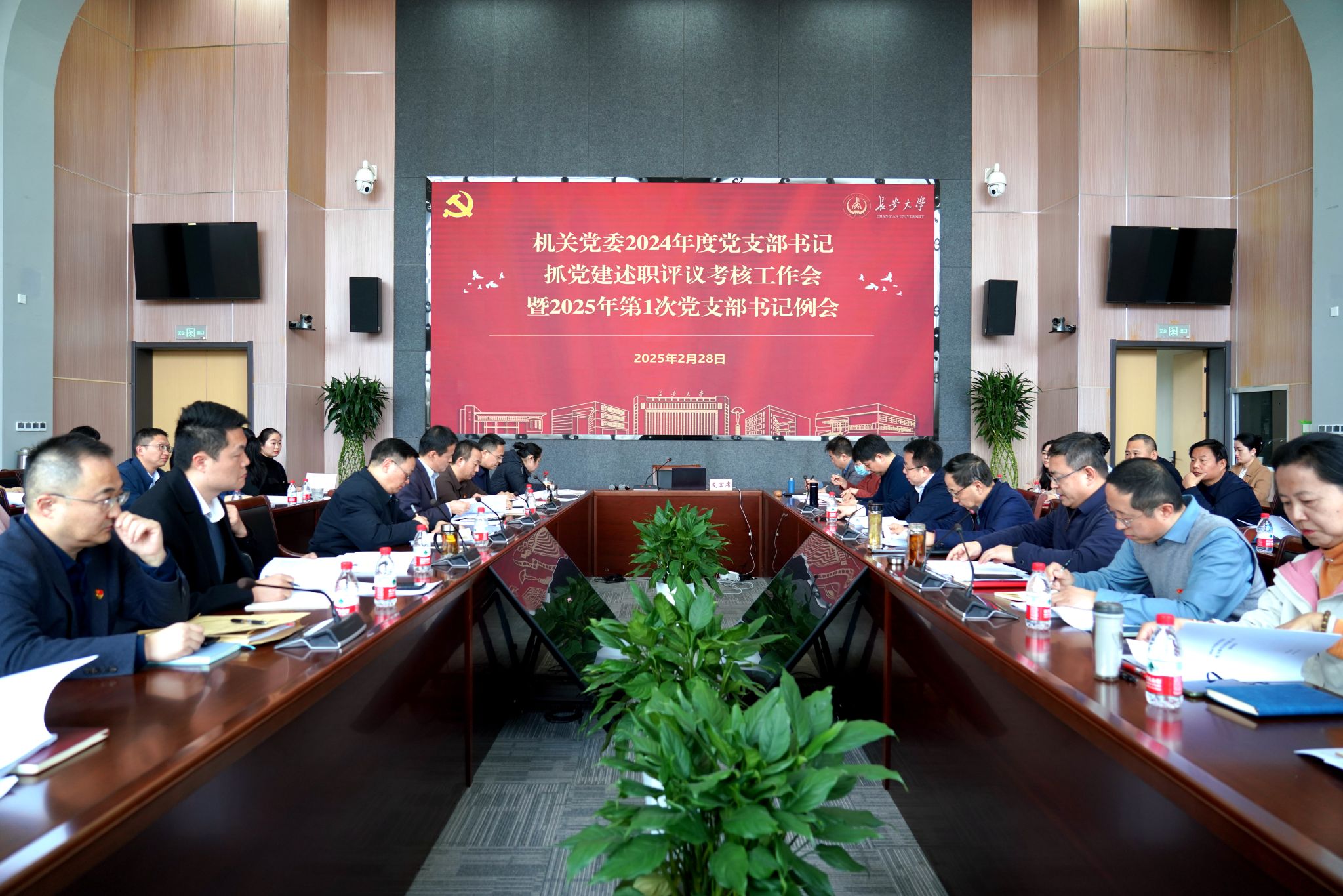 为进一步压紧压实管党治党政治责任,推动学校机关党的建设高质量发展,2月28日下午,机关党委在北校区师生服务大厅二层第一报告厅召开2024年度党支部书记抓党建述职评议考核工作会暨2025年第1次党支部书记例会。校党委副书记徐引正,机关党委委员、纪委委员,机关各党支部书记,党员代表近50人参加会议。会议由机关党委书记李金和主持。
