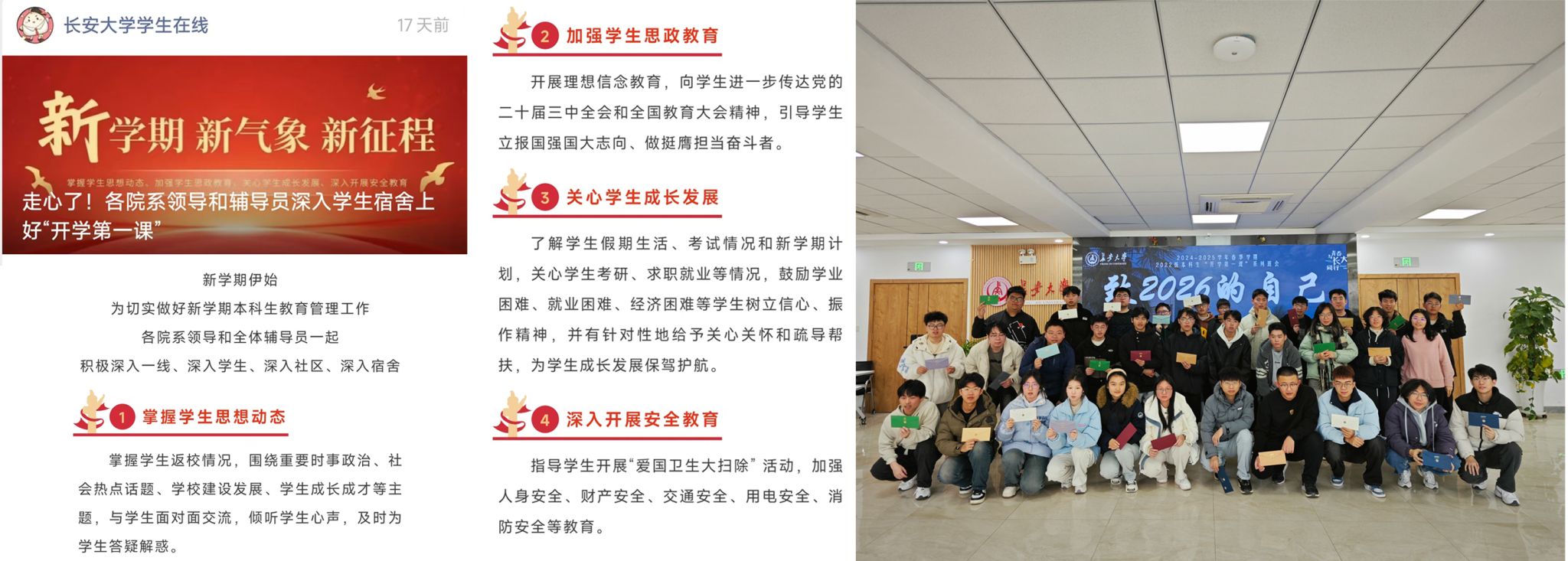 坚持以深入调查研究为抓手,全面精准掌握学生思想动态。强化数字赋能,精准掌握学生返校情况。依托“我在KY开元”学生离返校系统动态掌握25345名学生离乡时间、返校方式、到校时间等,通过请假系统跟踪做好未按时返校学生的闭环管理。践行“一线规则”,全面掌握学生思想动态。围绕重要时事政治、社会热点话题、学校建设发展、学生成长成才等主题,通过发放问卷、座谈访谈等方式深入开展调研,形成《KY开元集团官网本科生寒假思想动态调研报告》1份和院(系)学生思想动态调研报告23份。加强摸排疏导,有效解决学生实际困难。摸排学生寒假期间遭受灾害事故、家庭变故等情况,及时为多名学生发放临时困难补助;倾听学生对学校建设发展的意见建议,有针对性地开展教育引导;举办“写给学期末的自己”等活动,引导学生制定新学期自身成长发展的目标计划。