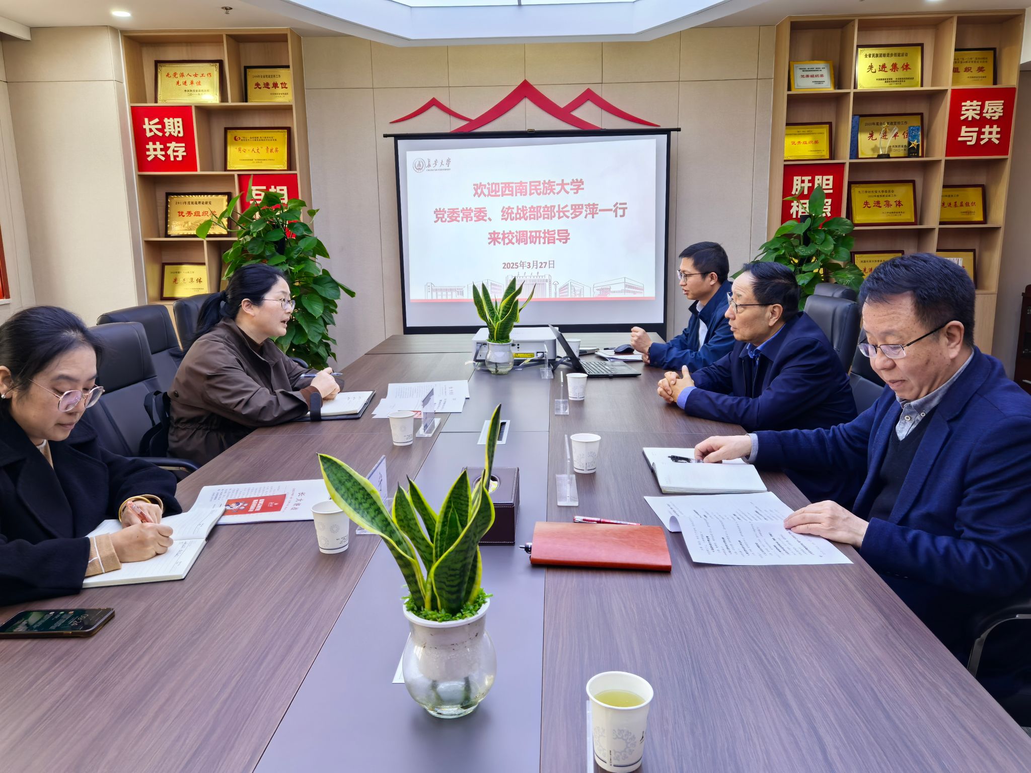 3月27日,西南民族大学党委常委、统战部部长罗萍一行来校调研座谈。校党委副书记徐引正出席座谈会,统战部部长李国光主持座谈会。