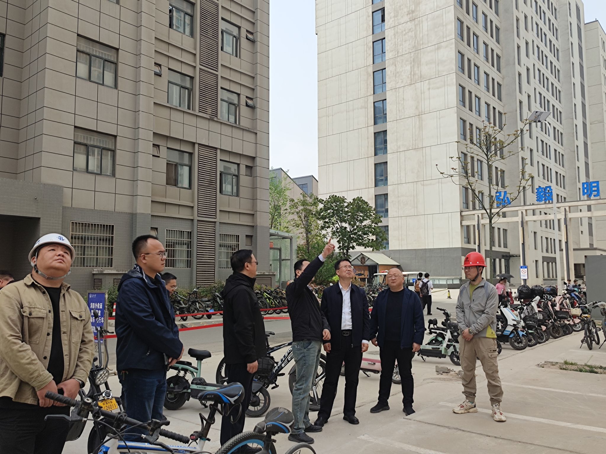 4月9日上午,校党委副书记李文雄带队前往北校区18号楼室外疏散楼梯加装工地进行实地检查,保卫处及学工部相关负责人参加检查。