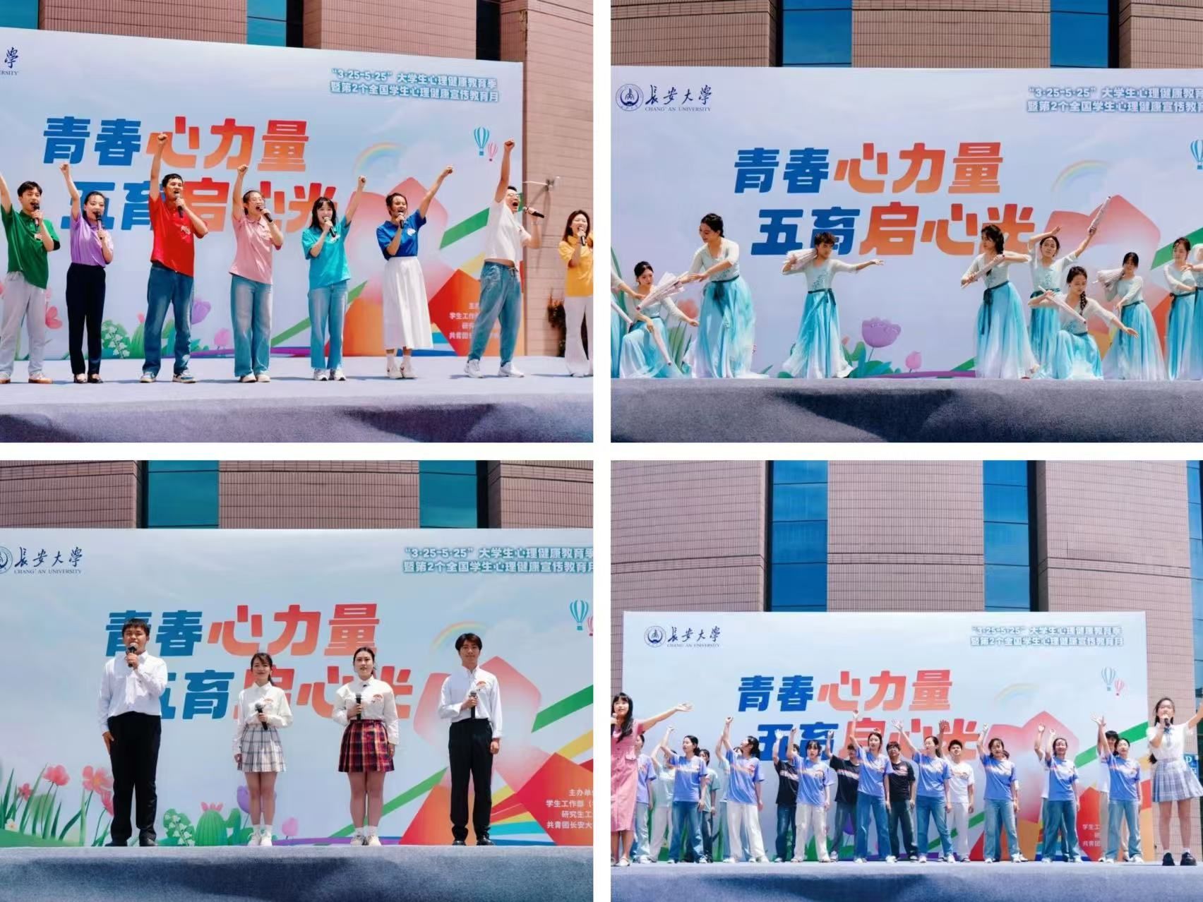 活动以“青春心力量·五育启心光”为主题,将心理健康教育与德智培养、体育锻炼、劳动实践、艺术表达相结合,引导学生形成科学的心理健康观念,掌握有效的压力调适方法,培育健康向上的生活态度。开幕式上,彩虹心理协会的指导教师和同学们通过歌唱、舞蹈和诗朗诵等方式传递爱的力量,诠释勇于挑战的心理品质,倡导齐心协作的团结精神,展现积极向上的良好精神面貌。