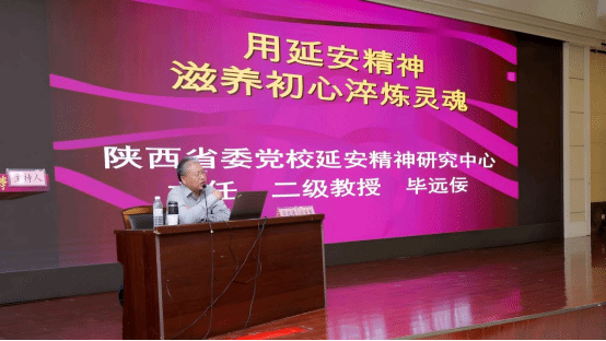 为深入学习贯彻党的二十大和二十届二中、三中全会精神,全面贯彻落实习近平总书记关于教育的重要论述和全国教育大会精神,持续巩固拓展党史学习教育成果,进一步强化教师党建和思想政治工作,6月4日下午,学校举办了“思政大讲堂”,邀请中共陕西省委党校延安精神研究中心主任、二级教授,陕西省委党校延安精神研究团队首席专家毕远佞教授作专题报告。讲座由教师工作部部长陈华鑫主持。