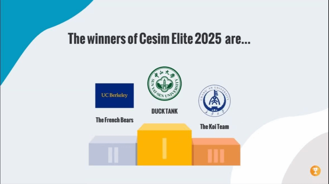 Cesim Elite国际总决赛是全球顶尖商学院学生展示战略思维、决策能力和团队协作的竞技舞台。第十七届Cesim Elite尖烽时刻全球商业模拟大赛共有850余所高校、超10000支参赛队伍参与。经过地区初赛、复赛的层层选拔,最终来自9个国家的16支地区冠军队伍入围全球总决赛。