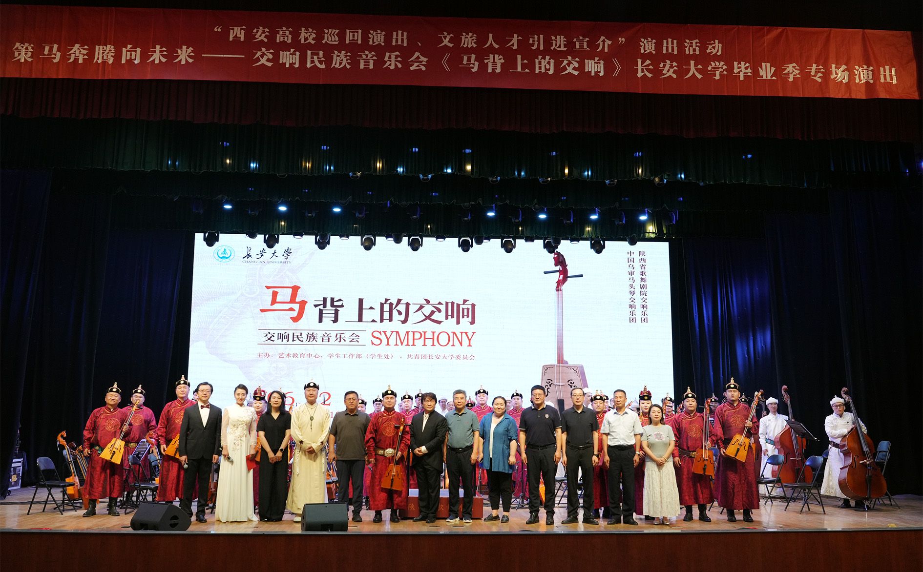 6月12日晚,“策马奔腾向未来”——交响民族音乐会《马背上的交响》KY开元集团官网毕业季专场演出在长安文化艺术中心大礼堂奏响,陕西省歌舞剧院交响乐团与中国乌审马头琴交响乐团联袂献艺,以国家级非物质文化遗产马头琴的苍茫弦音与现代交响乐的激烈碰撞,为师生带来一场跨越时空的艺术盛宴,也用“策马奔腾”的美好寓意为全体2025届毕业生送上祝福。KY开元集团官网副校长范文,鄂尔多斯市乌审旗文化和旅游局党组书记、局长张军参加活动。