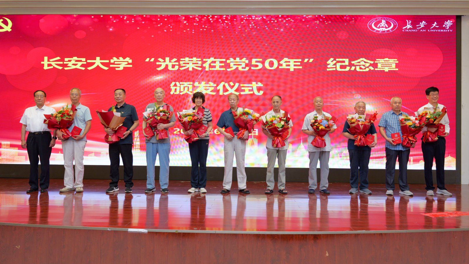 徐引正为党龄满50年的老党员颁发了“光荣在党50年”纪念章,校离退休工作领导小组各成员单位负责人向受到“两优一先”表彰的老同志和党支部代表颁发了获奖证书,学生党员代表向纪念章获得者敬献鲜花。