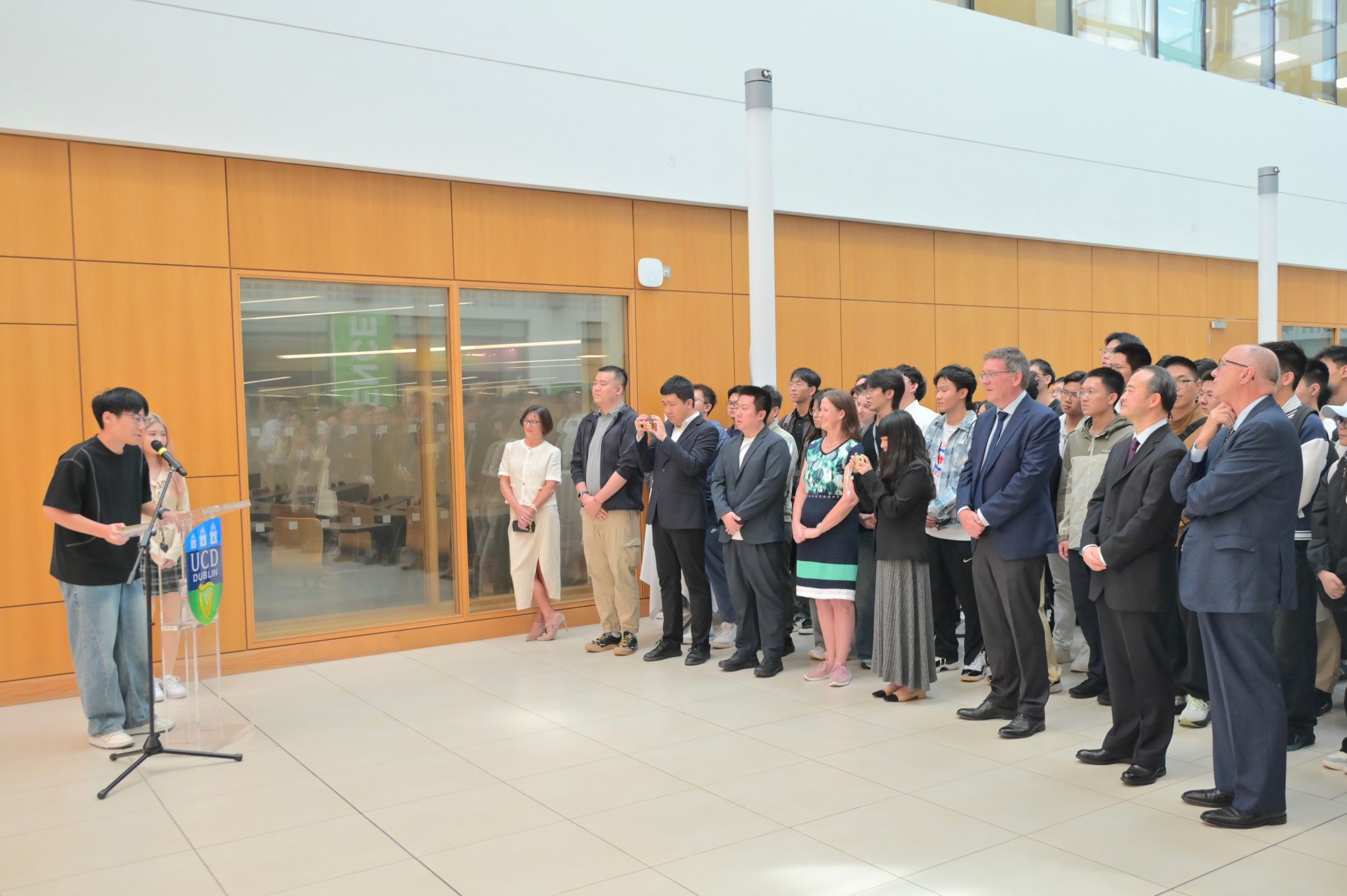 当地时间7月28日,长安都柏林国际交通学院2025年赴都柏林大学暑期夏令营项目启动仪式在都柏林大学在Belfield校区举行。中国驻爱尔兰大使赵希源、都柏林大学副校长Dolores O'Riordan、都柏林大学相关负责人、长安都柏林国际交通学院教务长Paul Fanning、任课教师代表、夏令营带队教师和全体学生参加启动仪式,活动由都柏林大学夏令营负责人Hugo主持。