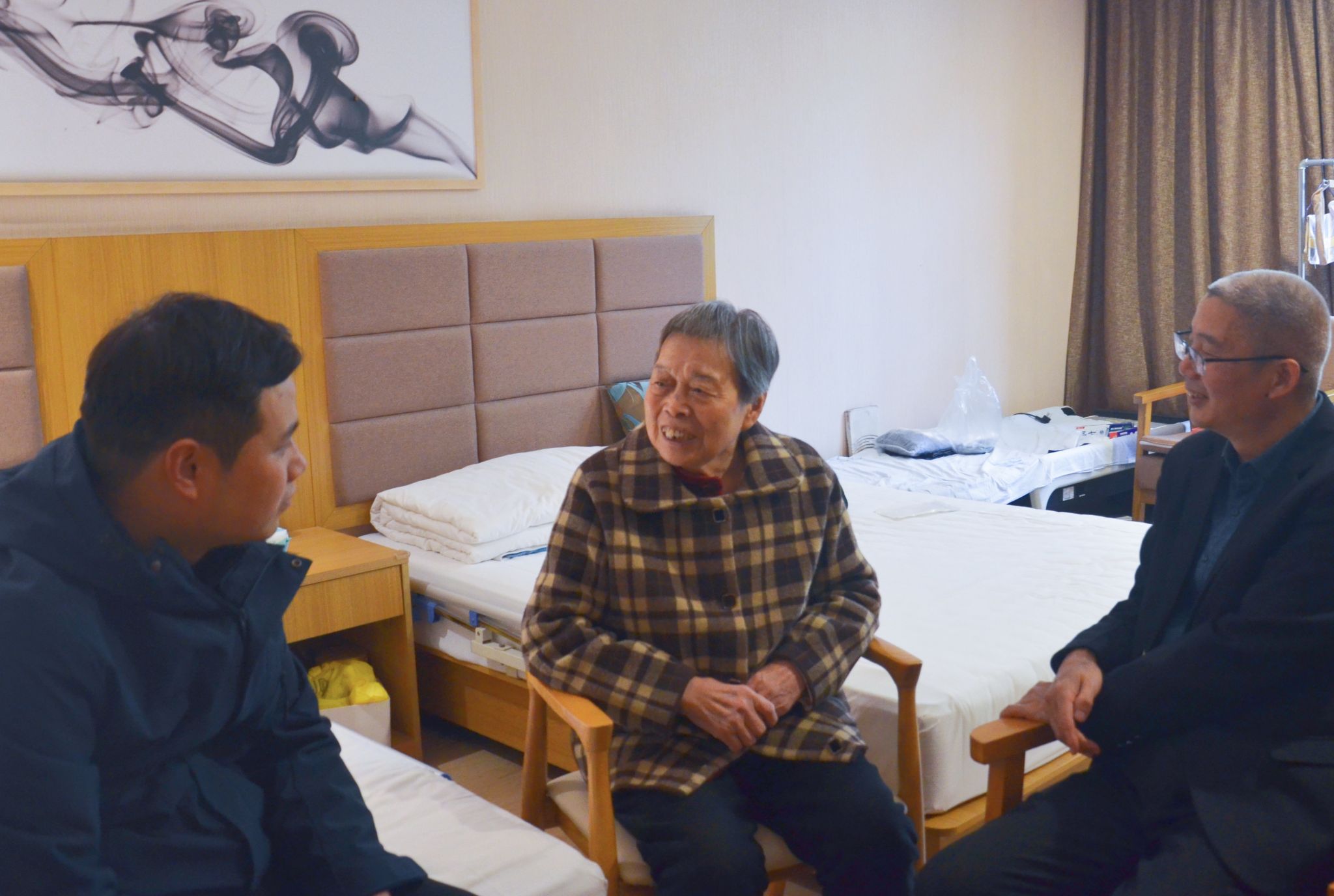 徐引正带队前往鄠邑区荣华清荷园慰问居住其中的4位老同志,黎开谊带队前往仁泰养老服务中心慰问居住其中的3位老同志,慰问组与老同志们面对面、心贴心交流,详细了解他们的身体情况,询问其在养老机构饮食、住宿、活动、服务等日常生活状况,为他们送上鲜花和慰问品,并嘱咐老同志们保持积极乐观的心态,保重身体,安享晚年生活。