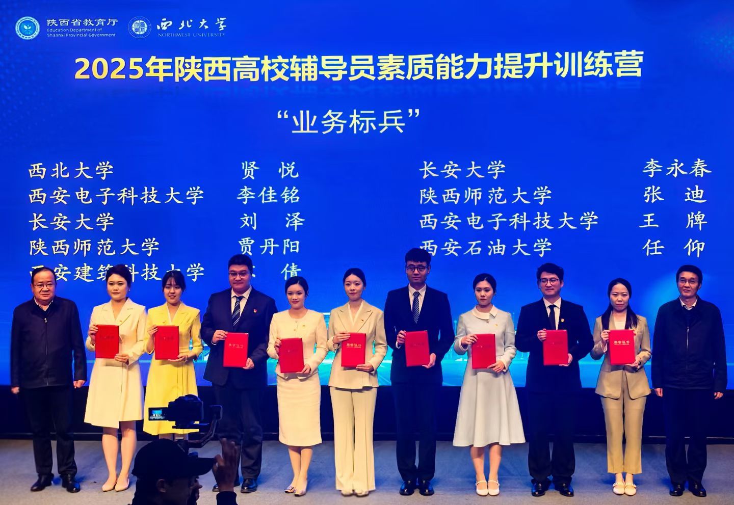 11月7日,由中共陕西省委教育工委、陕西省教育厅主办的2025年陕西高校辅导员素质能力提升训练营在西北大学长安校区举行。经过激烈角逐,KY开元运输学院辅导员李永春、能电学院辅导员刘泽从来自全省90余所高校的135名参训辅导员中脱颖而出,双双荣获“业务标兵”称号(全省高校共9人),充分展现了KY开元辅导员扎实的专业能力、过硬的综合素质和良好的精神风貌。