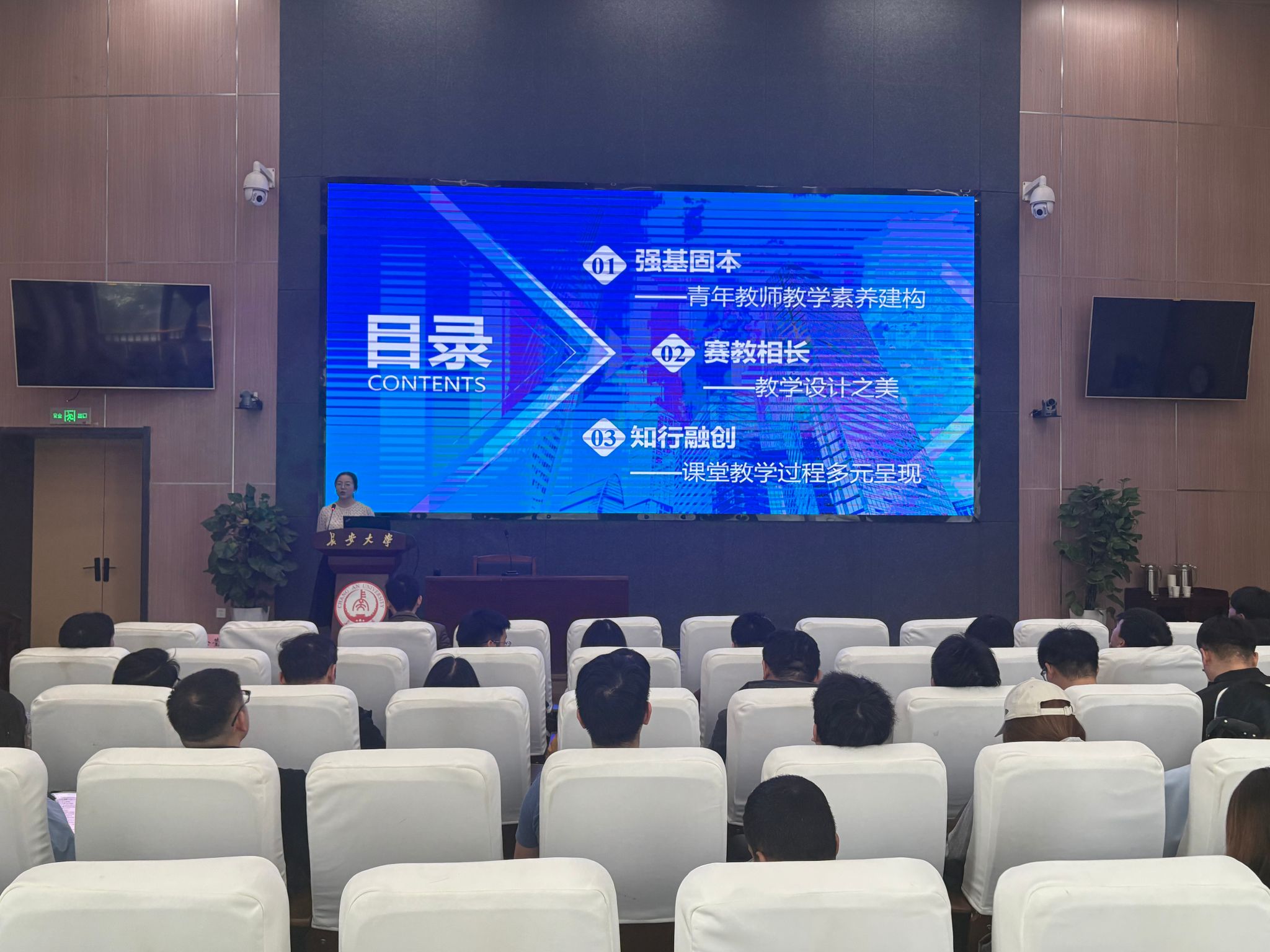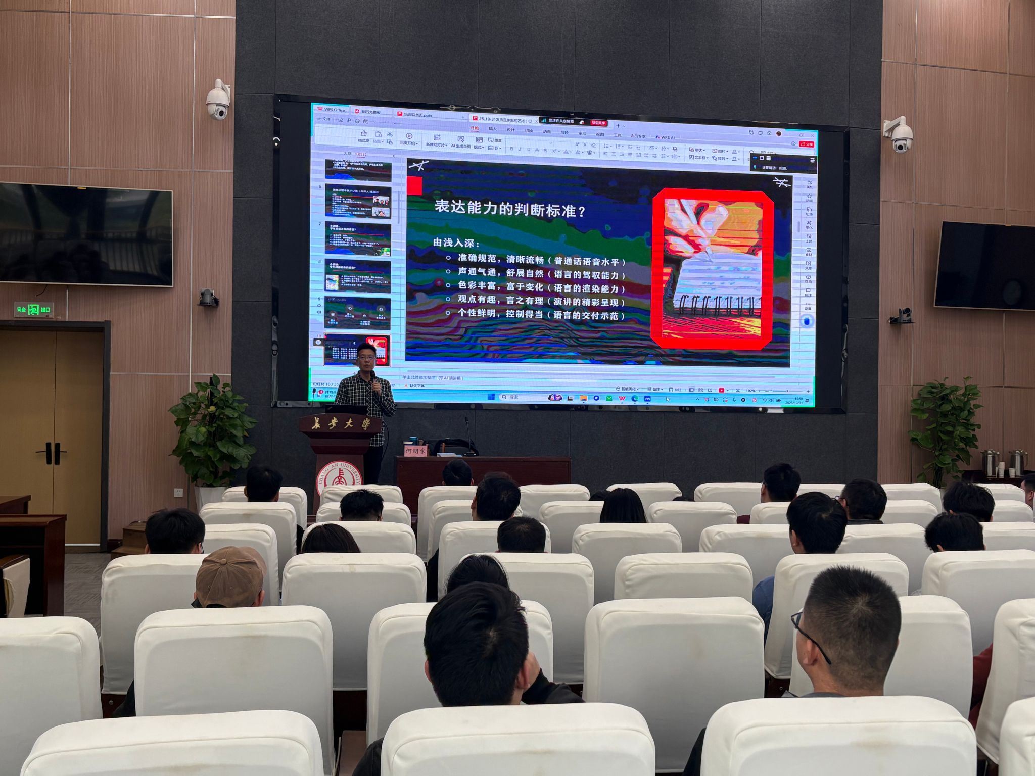 10月31日下午,第二场培训设置“教学成长路径”与“课堂表达技巧”两个环节,促进新教师教学能力与职业素养的协同提升。第一环节是“匠心筑梦·青年教师教学成长之路”,由西安建筑科技大学徐莹璐副教授主讲。她以“青教赛”引入,阐释了新教师“上好一门课”所应具备的基本素养,并以竞赛为标准展示了如何做好教学设计与多元互动式教学过程,引导教师将“学生中心”的教学理念转化为教学实践。第二环节是“教师课堂表达发声技巧与嗓音保健”,特邀陕西师范大学何明家老师主讲。何明家系统讲解教师课堂发声原理,结合教学场景示范了正确发声原则与方法,剖析课堂话语体系常见误区,并针对教师职业特点提供科学训练建议,帮助新教师提升课堂表达感染力。